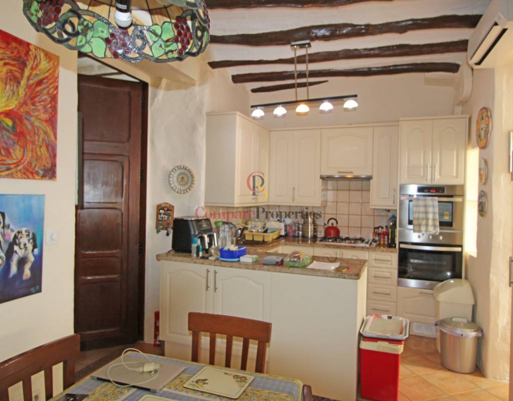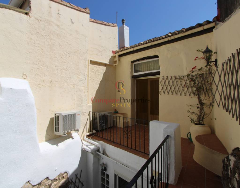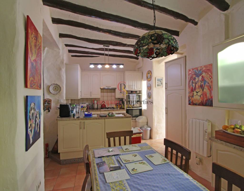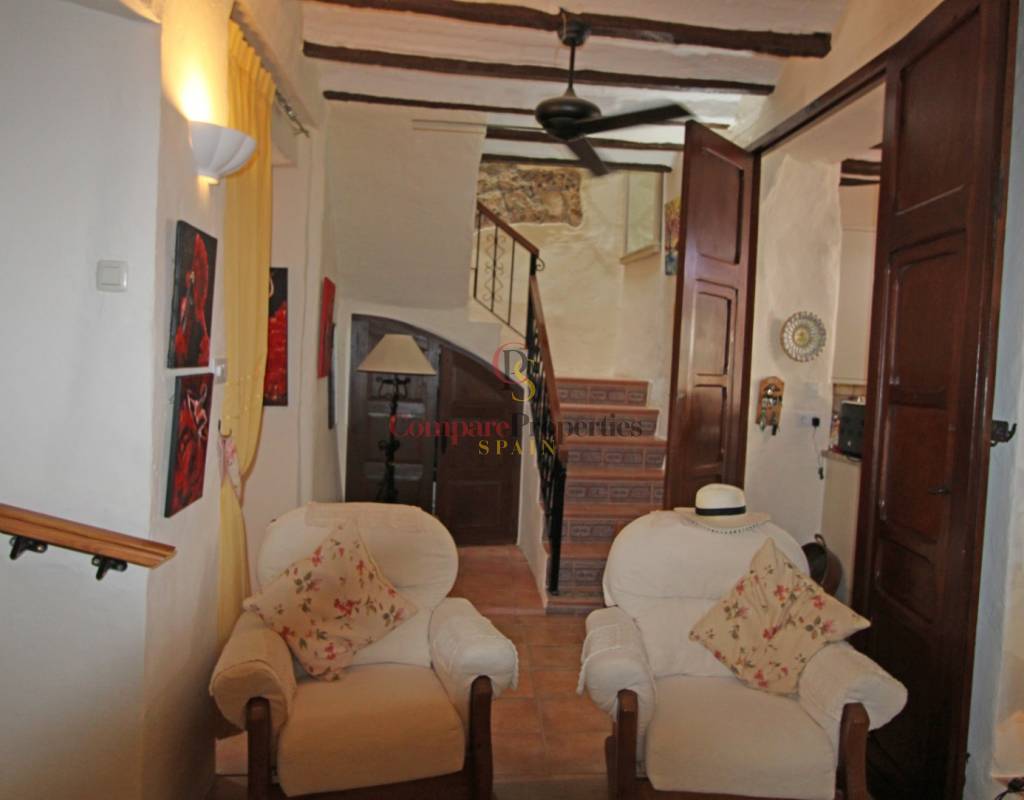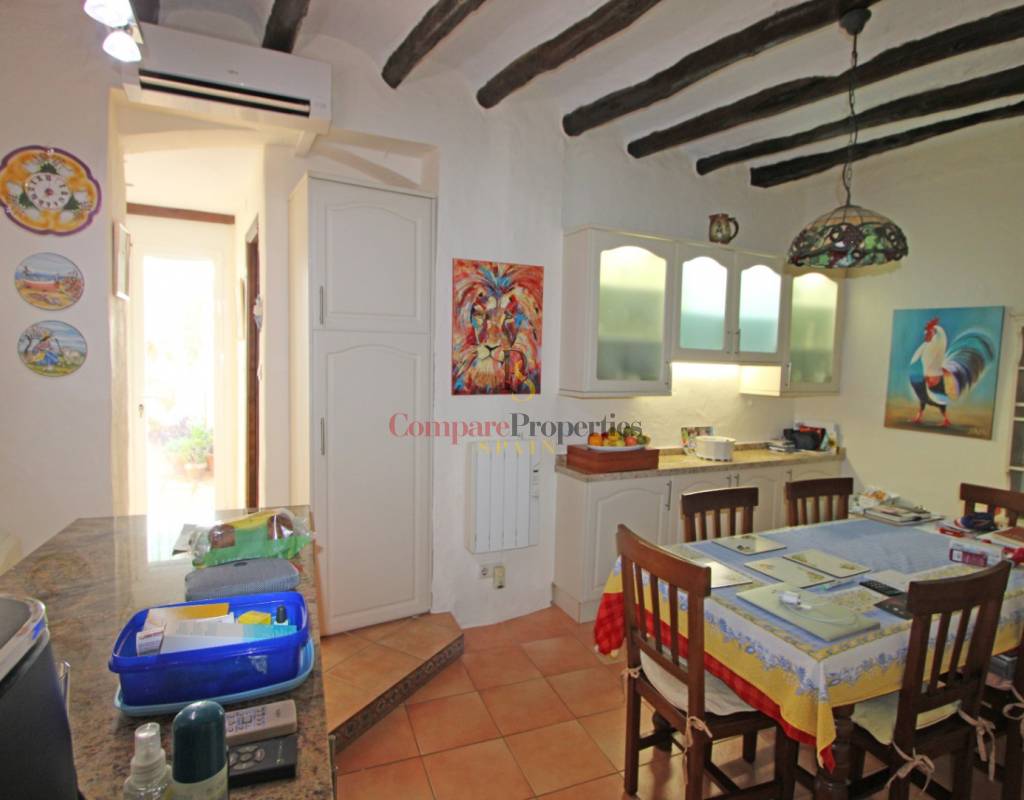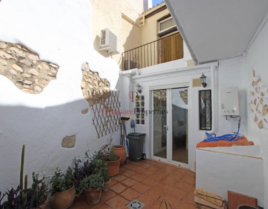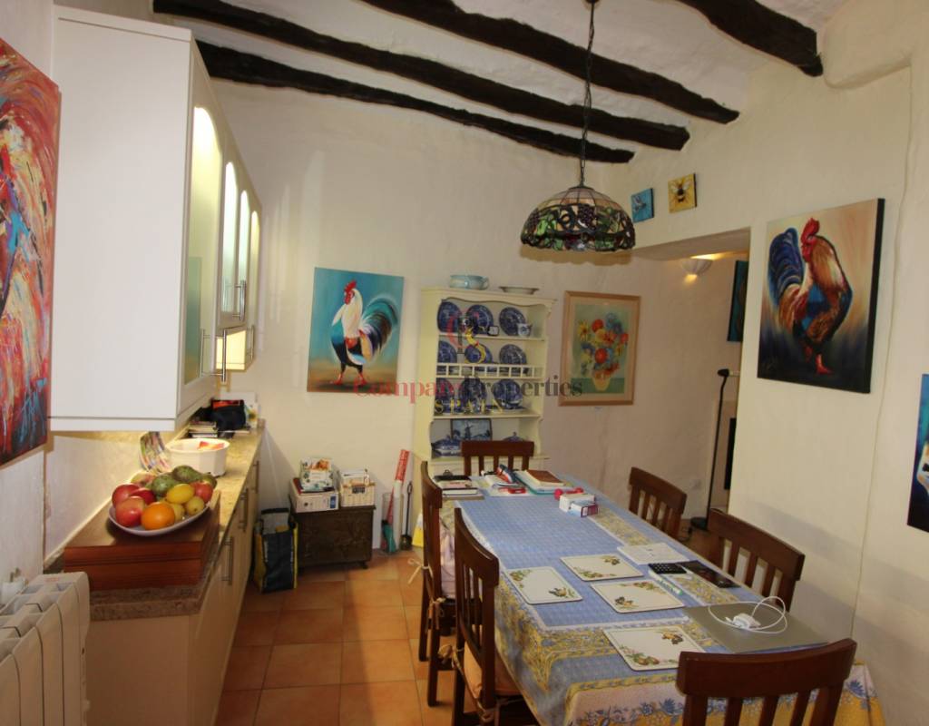 This beautiful townhouse, full of character, is situated in the centre of the typical Spanish village of Tormos is entered through large wooden doors into a living room with high ceilings, typical of the traditional casas de pueblos . There is also an additional living room with a new pellet burner . This room also benefits from a ceiling fan. There is a fully fitted kitchen and utility room with a separate dining room with a new A/C unit. On this level there is also 1 bedroom fitted with a ceiling fan, a shower room and a large store room under the stairwell.