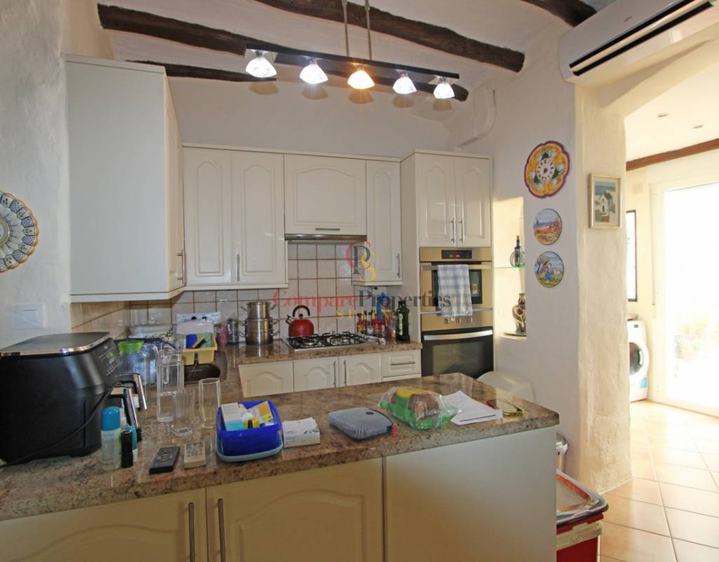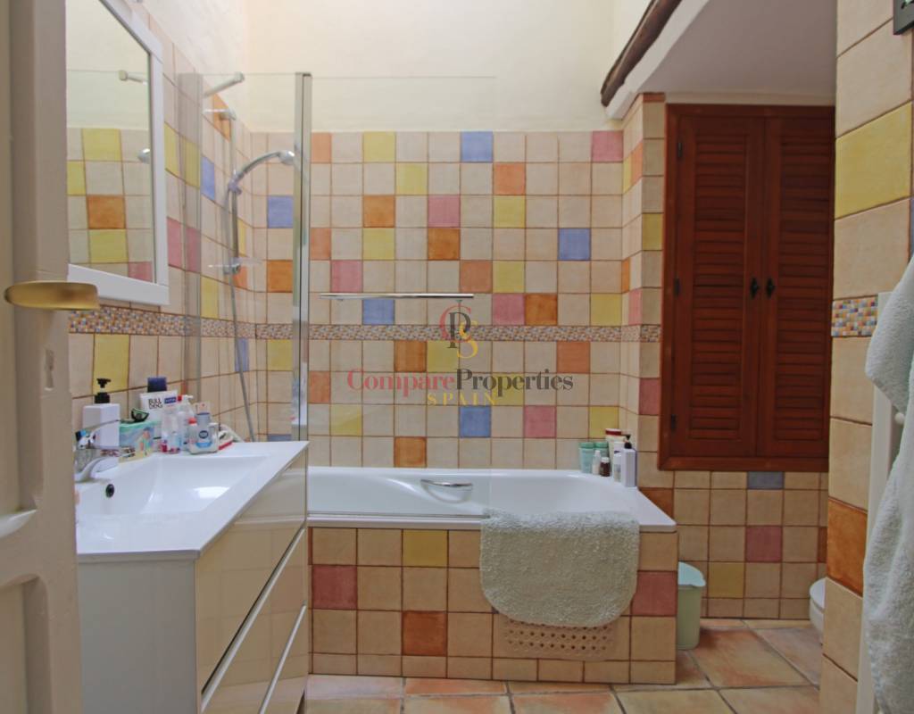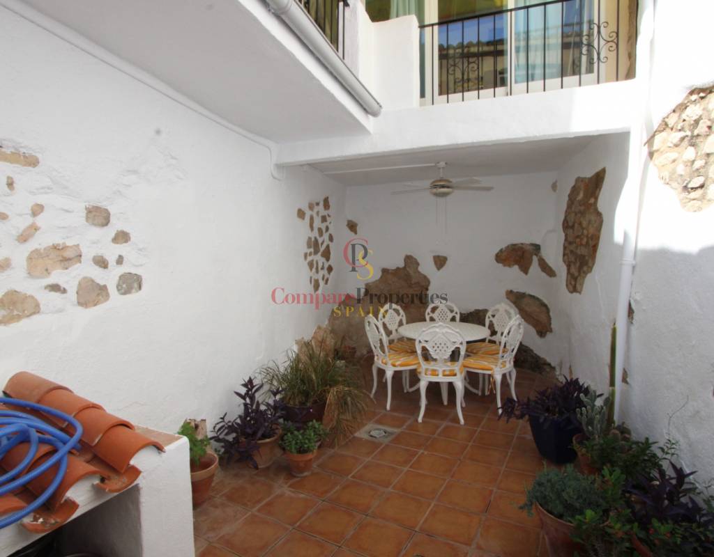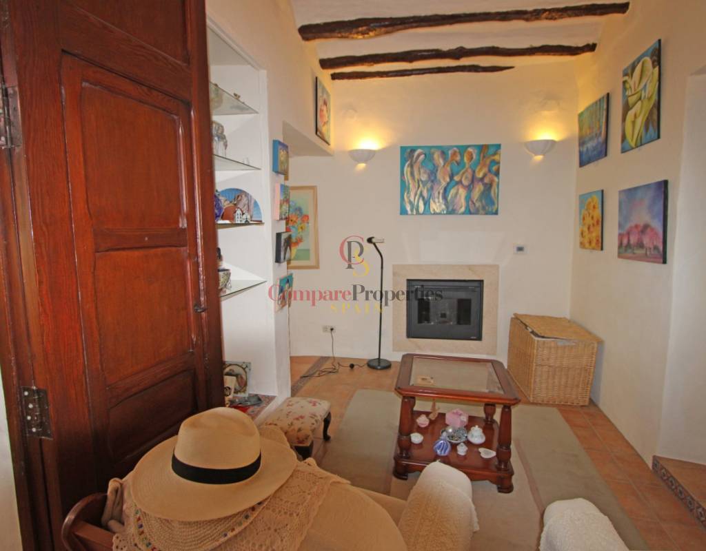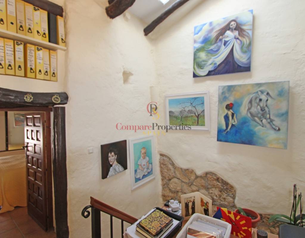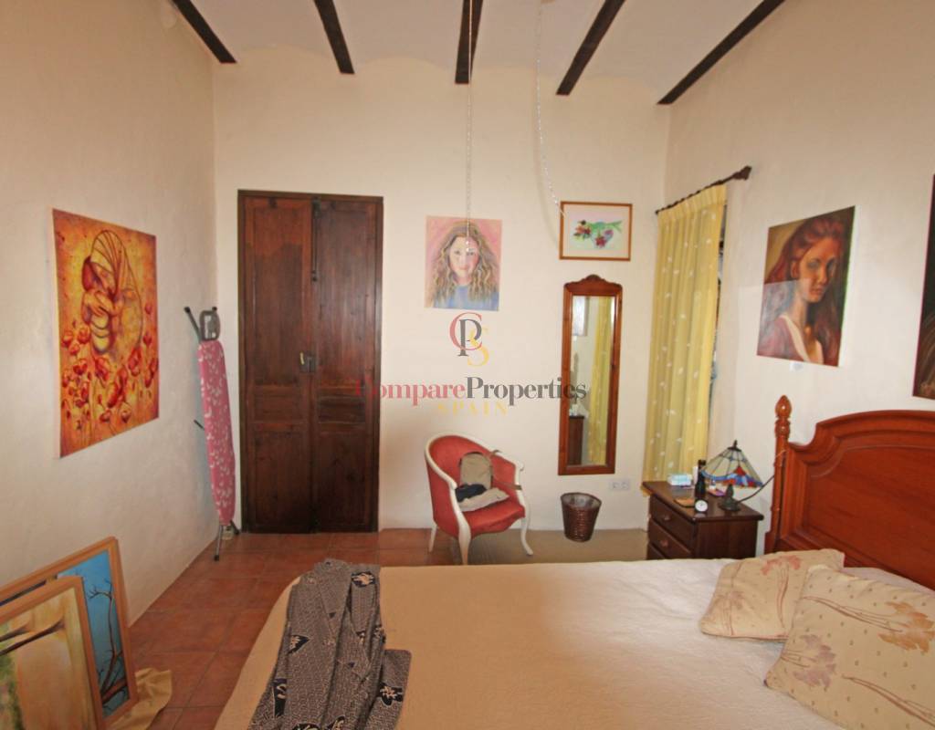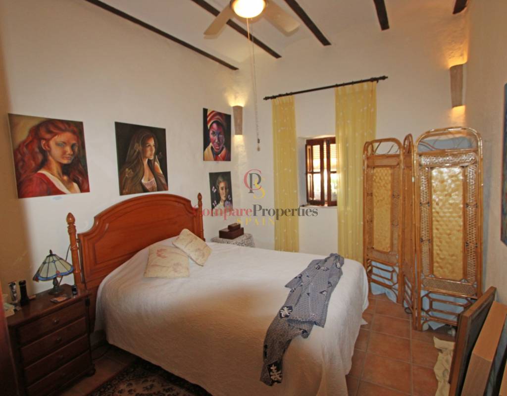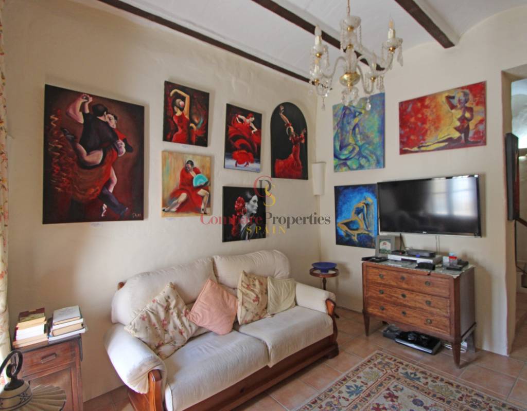 This beautiful townhouse, full of character, is situated in the centre of the typical Spanish village of Tormos is entered through large wooden doors into a living room with high ceilings, typical of the traditional casas de pueblos . There is also an additional living room with a new pellet burner . This room also benefits from a ceiling fan. There is a fully fitted kitchen and utility room with a separate dining room with a new A/C unit. On this level there is also 1 bedroom fitted with a ceiling fan, a shower room and a large store room under the stairwell.