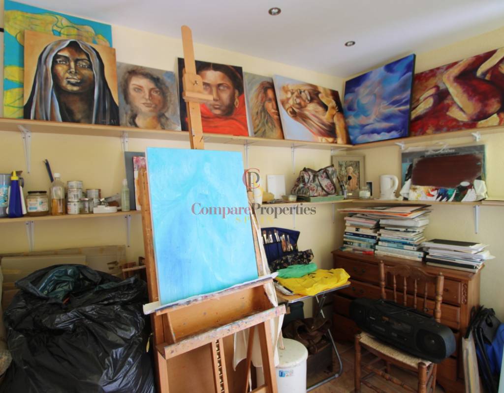 On this level is an open terrace which leads to an additional room now used as the owners studio, but could also function as an office or a single bedroom. This room also has an A/C unit fitted.