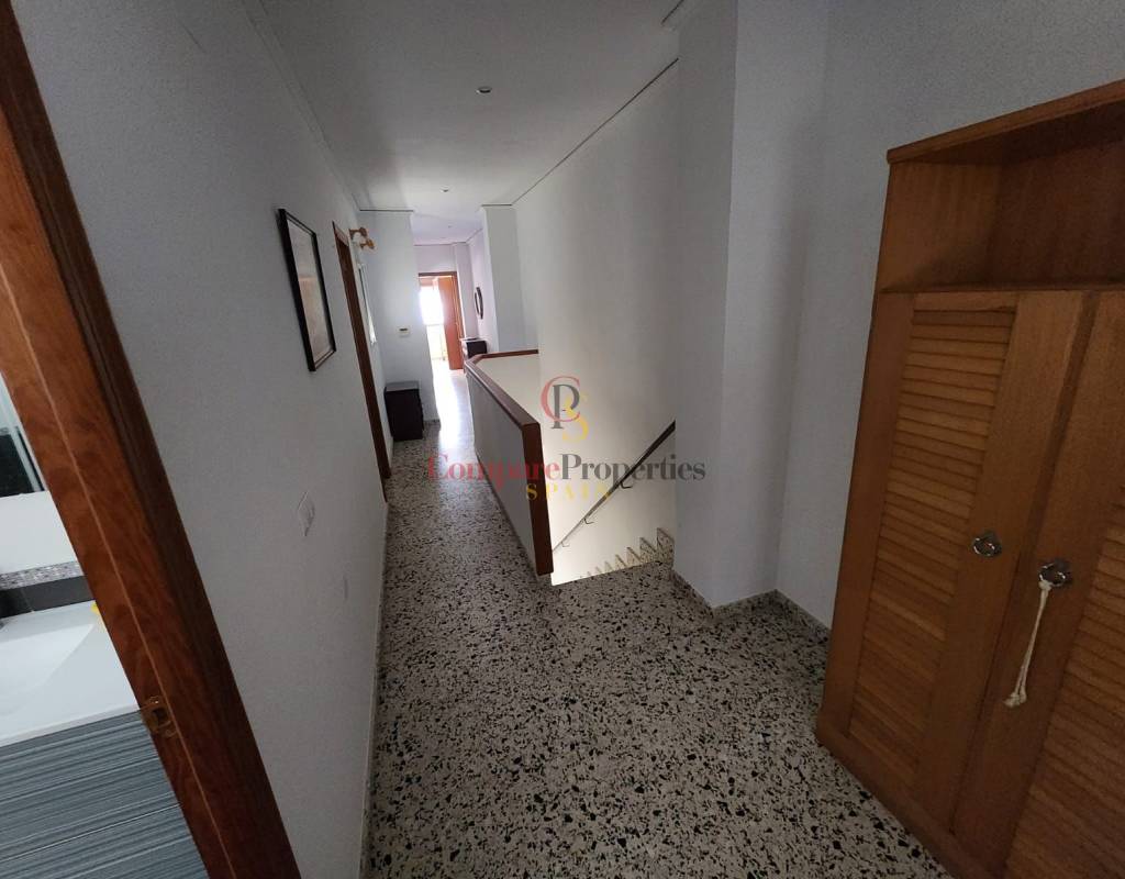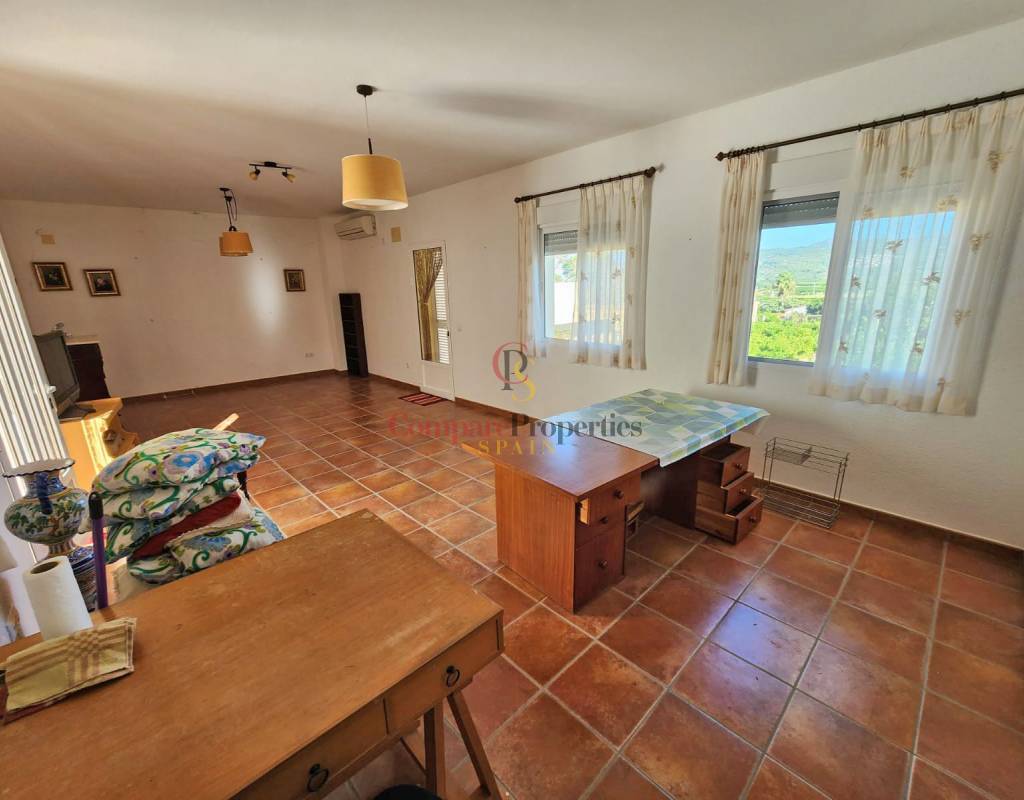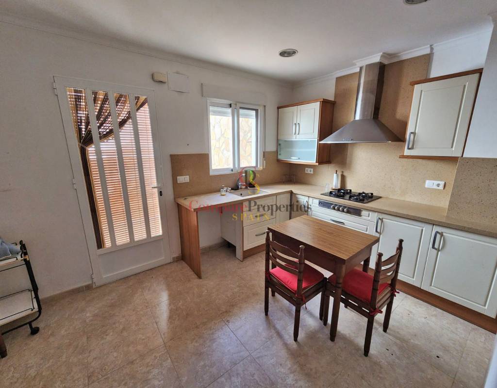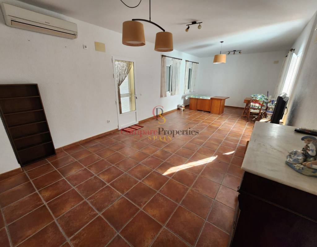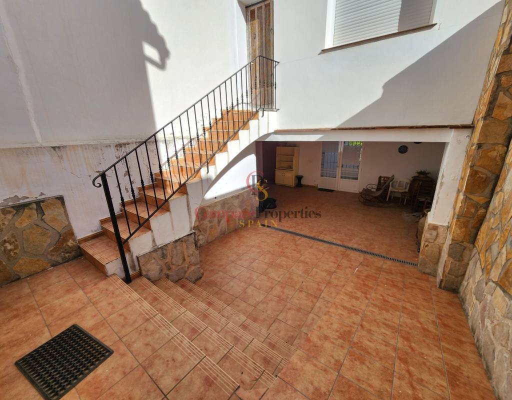 Village house with garage and patio for sale in Tormos. The house is located in a very quiet area and has 2 entrances. The main house consists of 2 floors with the following layout: The ground floor includes a living-dining room, an independent kitchen, an utility room, a bedroom and a bathroom. The upper floor is divided into 3 bedrooms with built-in wardrobes and a bathroom. There is also a cpatio that has another building with a very large room and an open terrace. The property is very close to all services such as supermarkets and restaurants. The nearest beaches are 20 minutes away. The largest shopping center in the area is located in Ondara, less than 15 minutes by car, as well as the highway to Valencia (1 hour) and Alicante (1 hour).