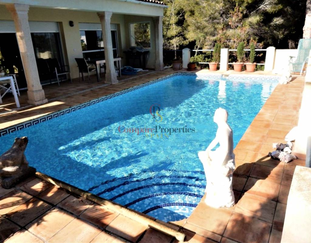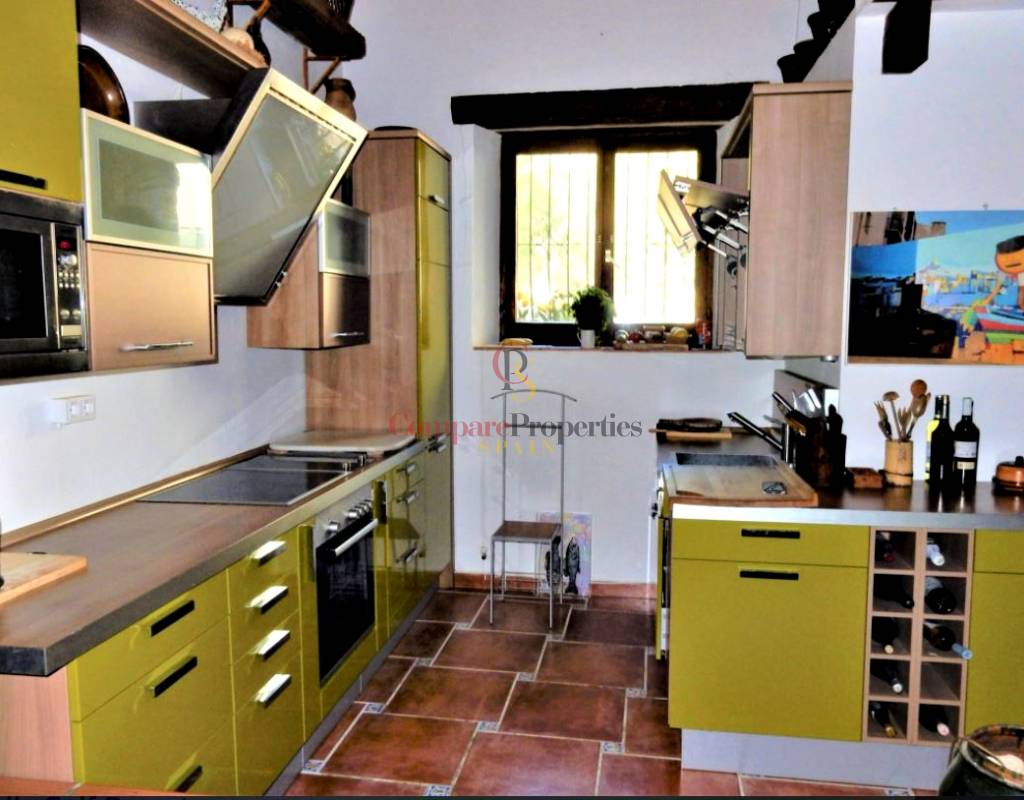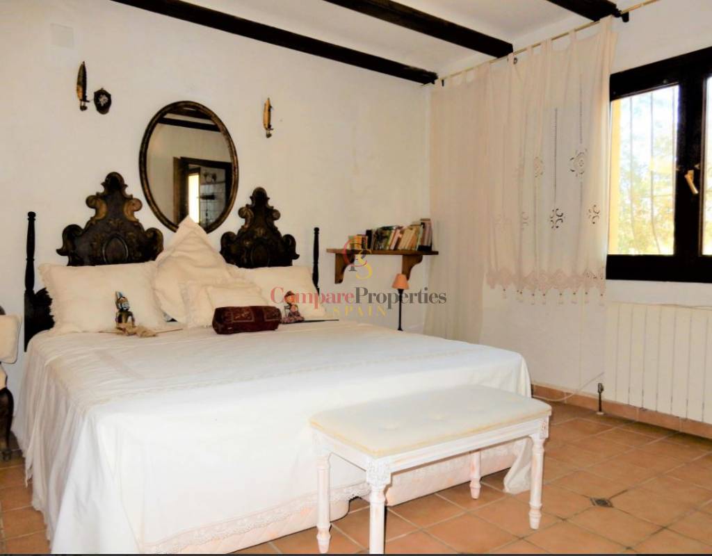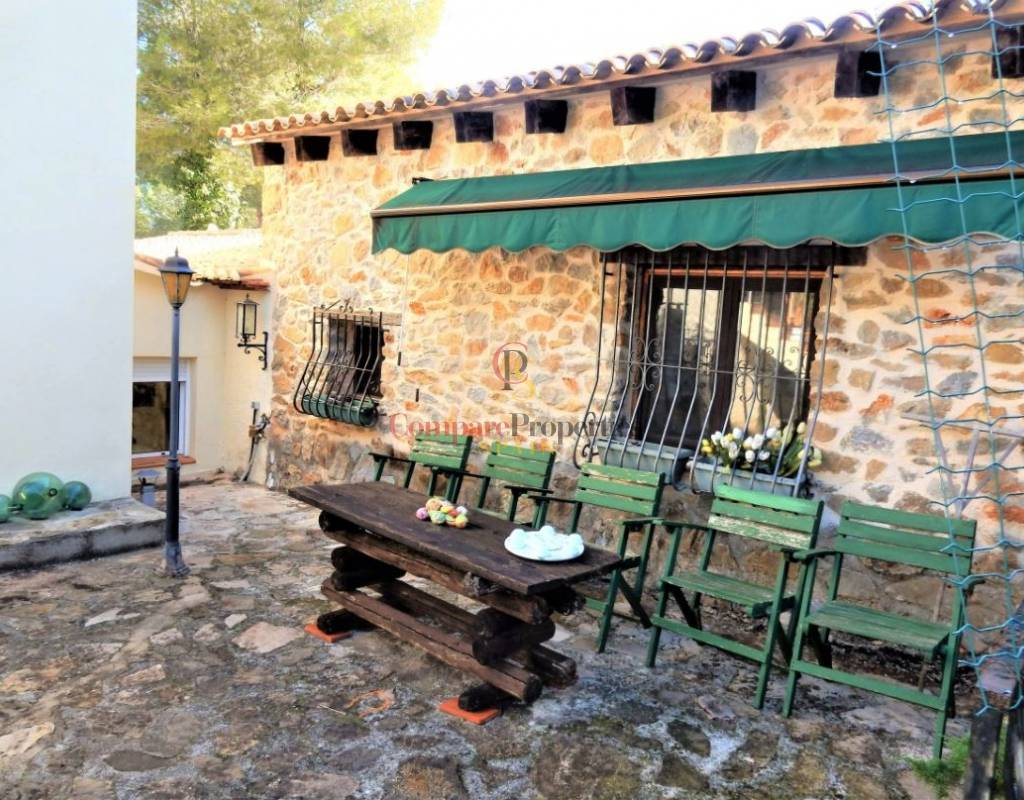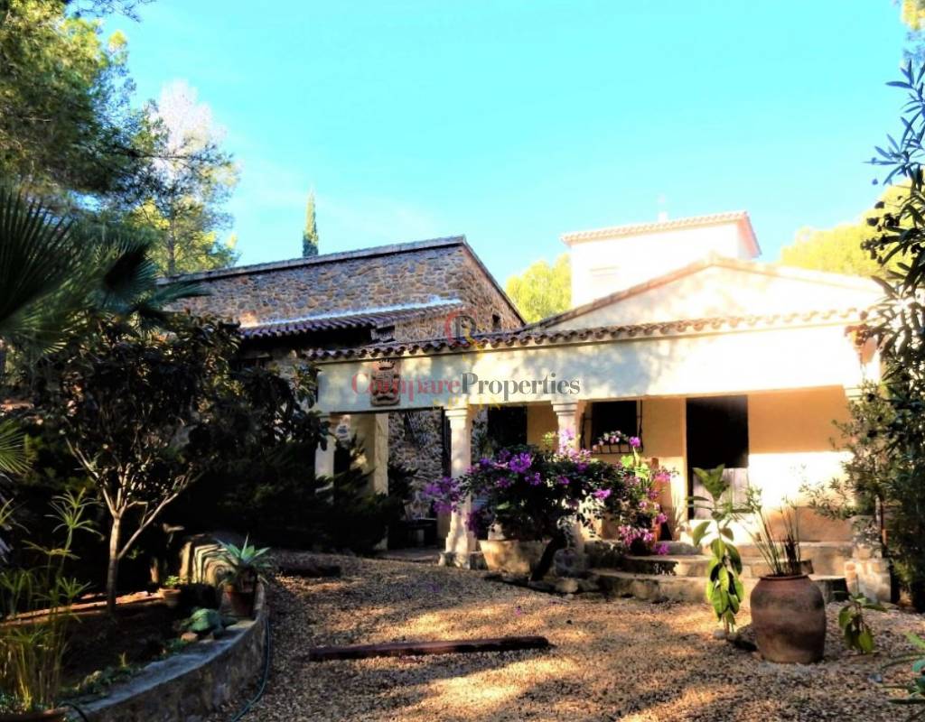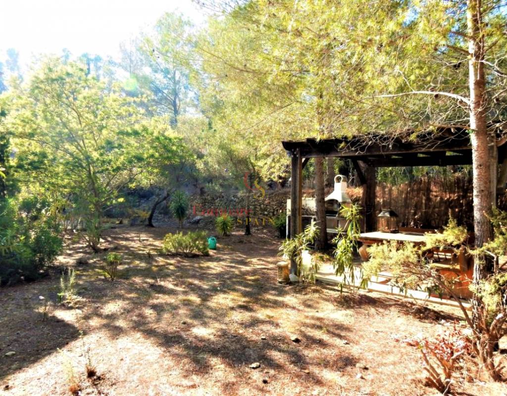Beautiful finca located in La Sella with a large plot of 6,000 m² of garden and pine forest. The house, built in several heights, has 4 bedrooms, 3 bathrooms, 2 living rooms and a dining room, as well as a new fully equipped kitchen. It is equipped with central heating, swimming pool, garage, parking, open and covered terrace, storage room, fireplace, barbecue, summer kitchen and laundry. All in a green environment, surrounded by nature, with beautiful panoramic views and very Mediterranean style.