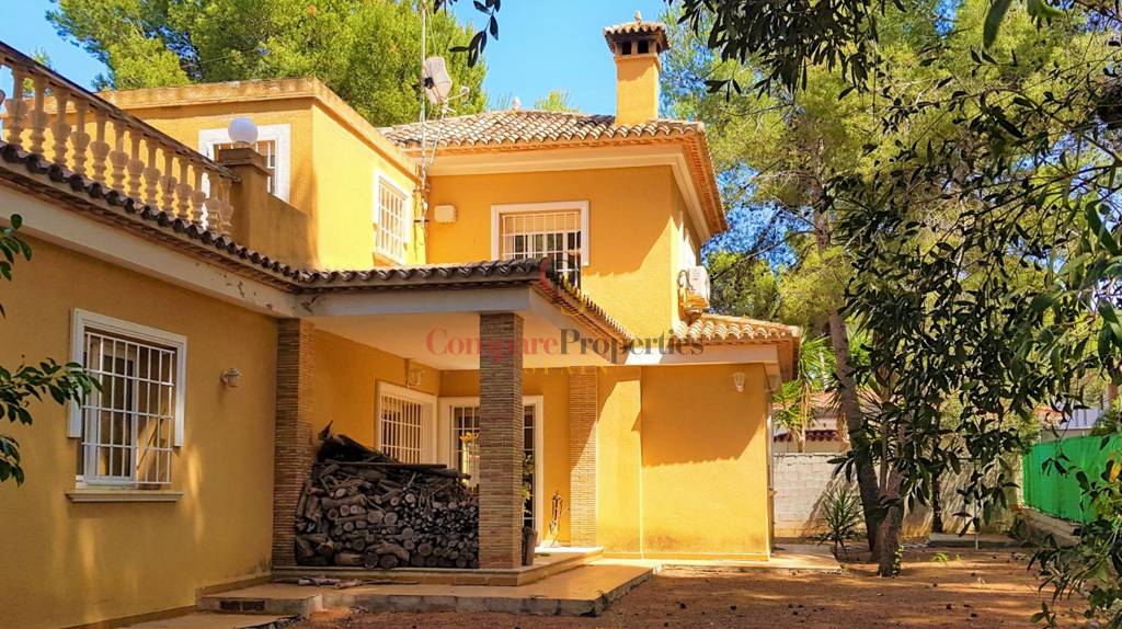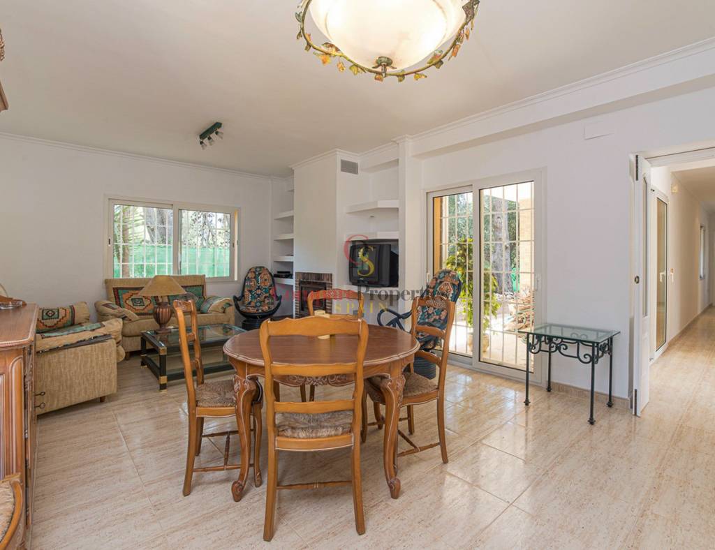 This villa is located in one of the best areas of Denia, a few meters from the sea and overlooking the Montgó. The sound of the birds, the sea breeze, our wonderful sunsets... What more could you ask for? Built on a plot of 969 m2, it is distributed over two floors. On the main floor we find two bedrooms and a bathroom, the living room with fireplace, kitchen, laundry room and several exits to the garden. The staircase takes us to the upper floor where there is the master bedroom with bathroom en suite, and several fitted wardrobes that give the option to open a large dressing room. From here we go out to one of the sueperiores terraces, on the opposite side there is another terrace that gives a lot of light to the plant. The house has a garage with capacity for three vehicles, storage room and direct access to the house.