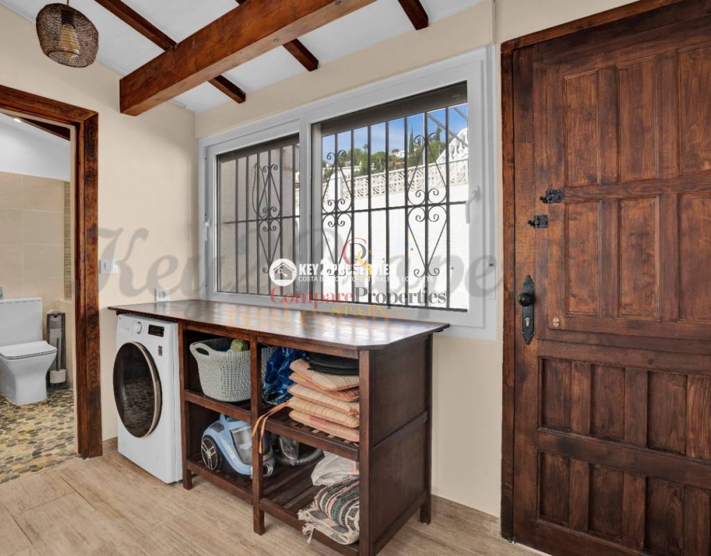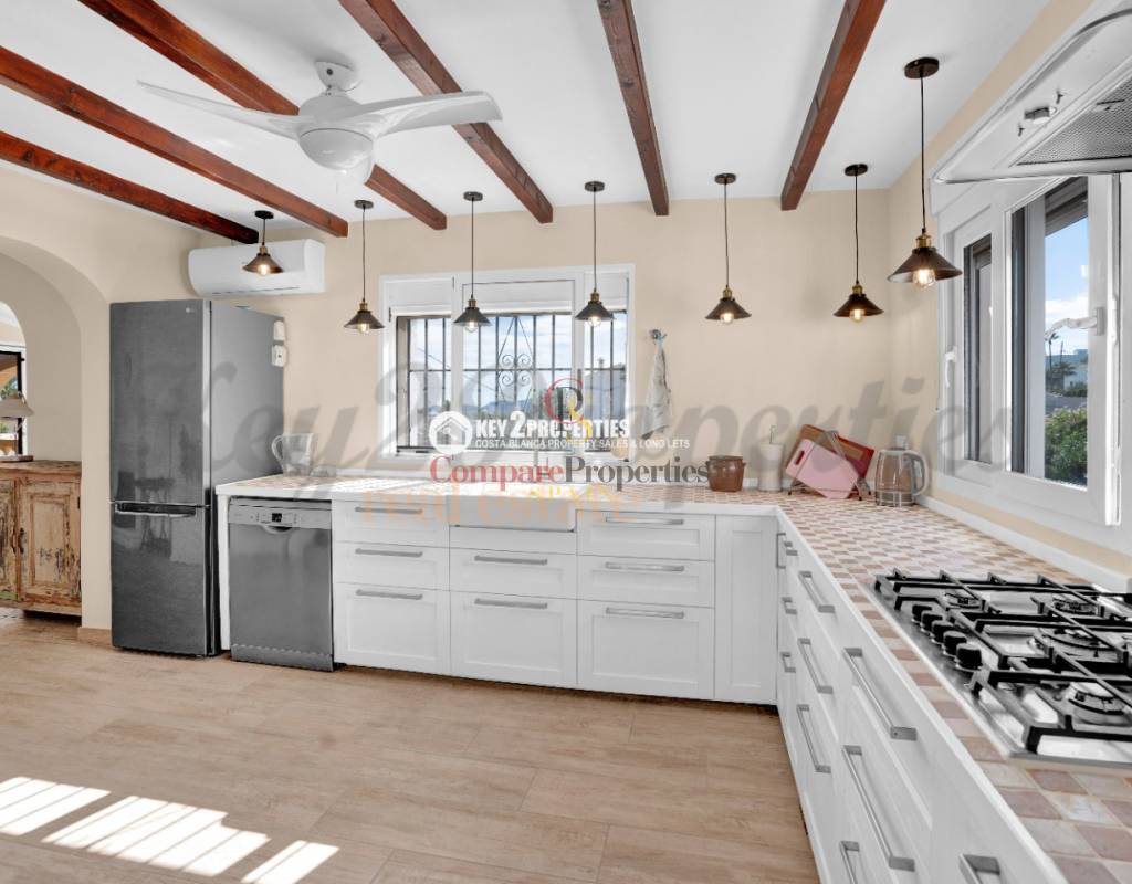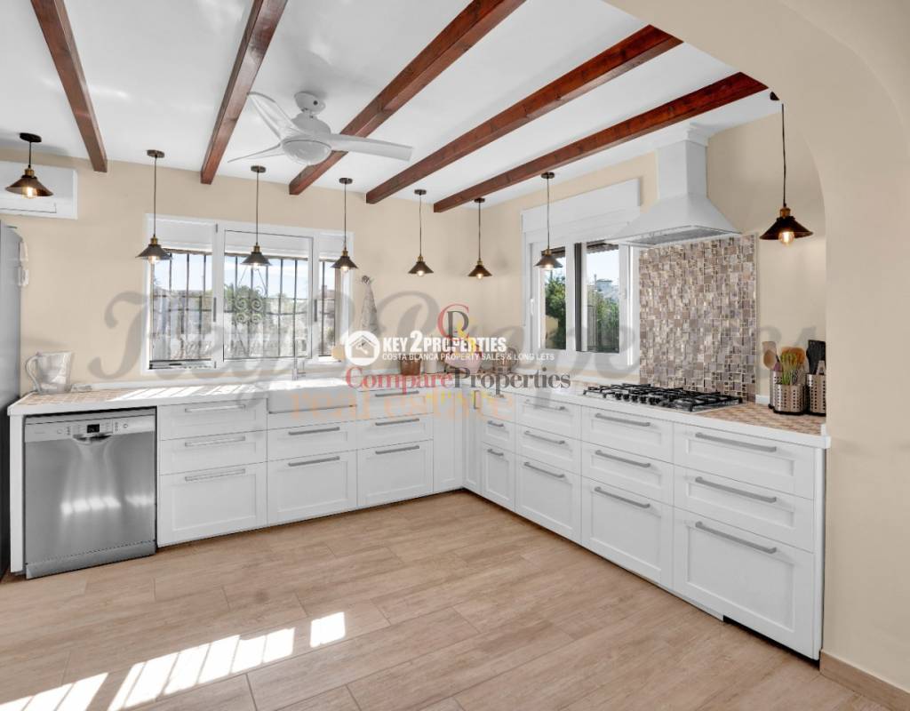 Exclusive to Key2Properties. Set in the prestigious Puchol area of Jávea. Ideally located within a very short walk to the port, and the beach, it offers the perfect balance of tranquility and convenience. The property features a total of four bedrooms and three bathrooms, including a bright and spacious main home with an open kitchen and inviting living area, as well as a fully independent apartment with kitchen and a lounge, one bedroom, one bathroom, and an office — ideal for guests, family, or rental opportunities. Designed for year-round living, the villa is equipped with solar panels (which provide energy to the heat pump for the underfloor heating and the heated pool), underfloor heating, and air conditioning throughout. Large windows and multiple terraces—three in total—make the most of the natural light and capture the beautiful sea views. Outside, the home truly shines with its generous terraces, landscaped garden, and a private heated saltwater swimming pool. The outdoor bar and BBQ area create the perfect setting for entertaining or simply enjoying Jávea’s relaxed Mediterranean lifestyle. The property also includes ample parking for several cars (carport) and offers a sense of space and privacy rarely found so close to town. This is a rare opportunity to own a stylish, energy-efficient villa in one of Jávea’s most sought-after locations, combining comfort, versatility, and stunning sea views. Contact us today to arrange a private viewing and experience the beauty and lifestyle this exceptional home has to offer.