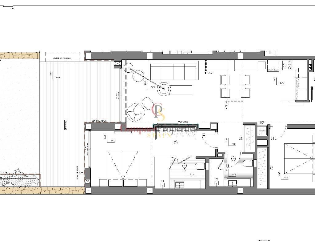 With a total built area of 143 m², this flat offers ample space to enjoy: 91 m² of living space, a cosy 23 m² covered terrace, and 29 m² of communal areas, complemented by an exclusive private garden of almost 36 m², ideal for relaxing outdoors.