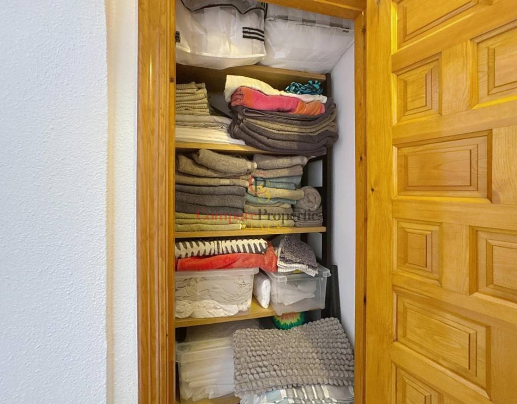 Two double bedrooms with fitted wardrobes.Spacious bathroom.Living/dining room with open-plan kitchen, perfectly integrated with the terrace area.Three storage cupboards in the entrance hall, providing ample storage space.Private terrace with panoramic views, the ideal place to relax and contemplate the sea.Hot and cold air conditioning in all rooms, ensuring comfort throughout the year.