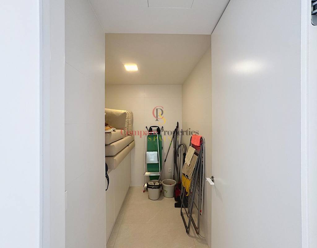 Master bedroom with dressing room and en-suite bathroom.Double bedroom and single bedroom, both bright and spacious.Second full bathroom with designer finishes.Large laundry room and utility room for added convenience.Open-plan living/dining room with fully equipped open-plan kitchen with Siemens appliances.Panoramic terrace perfect for relaxing and enjoying the surroundings.Covered parking space and private storage room included.The apartment is in impeccable condition, equipped with underfloor heating, ducted air conditioning, home automation system and top brand materials in all finishes.