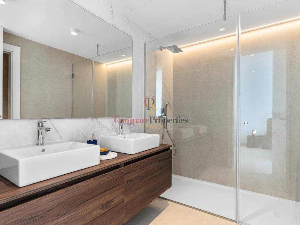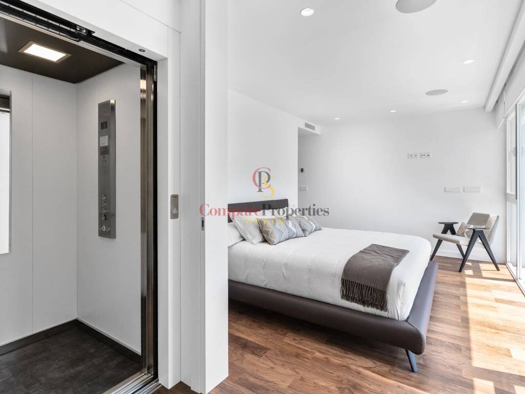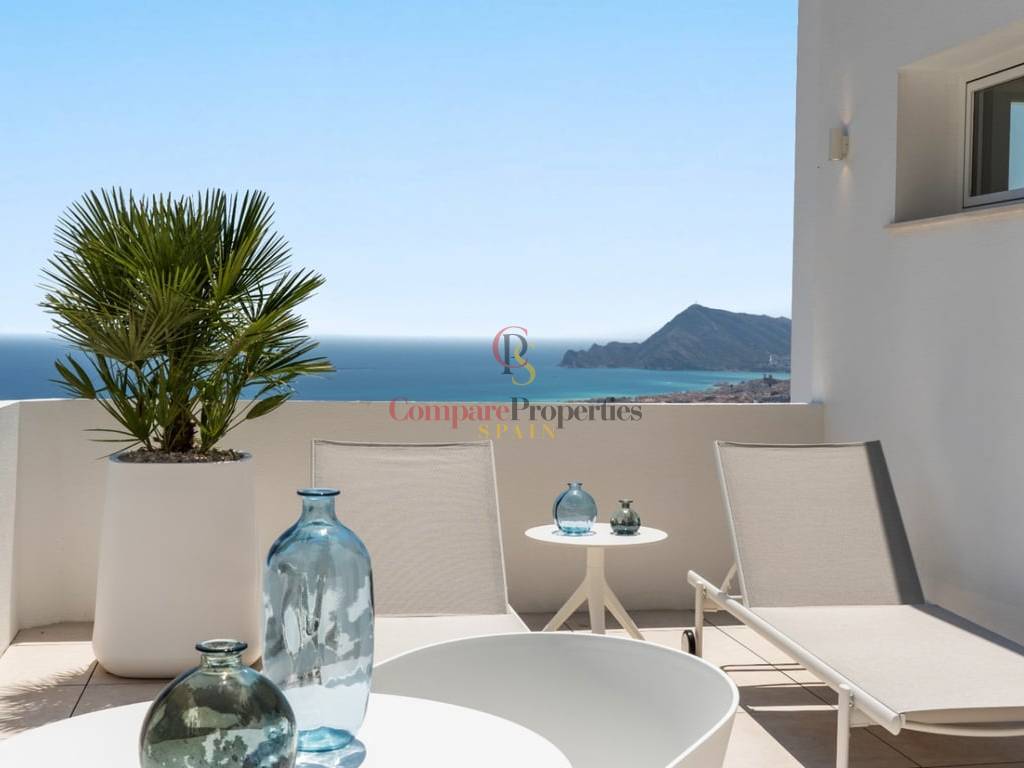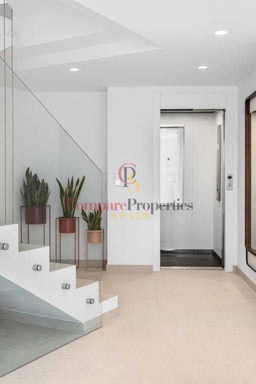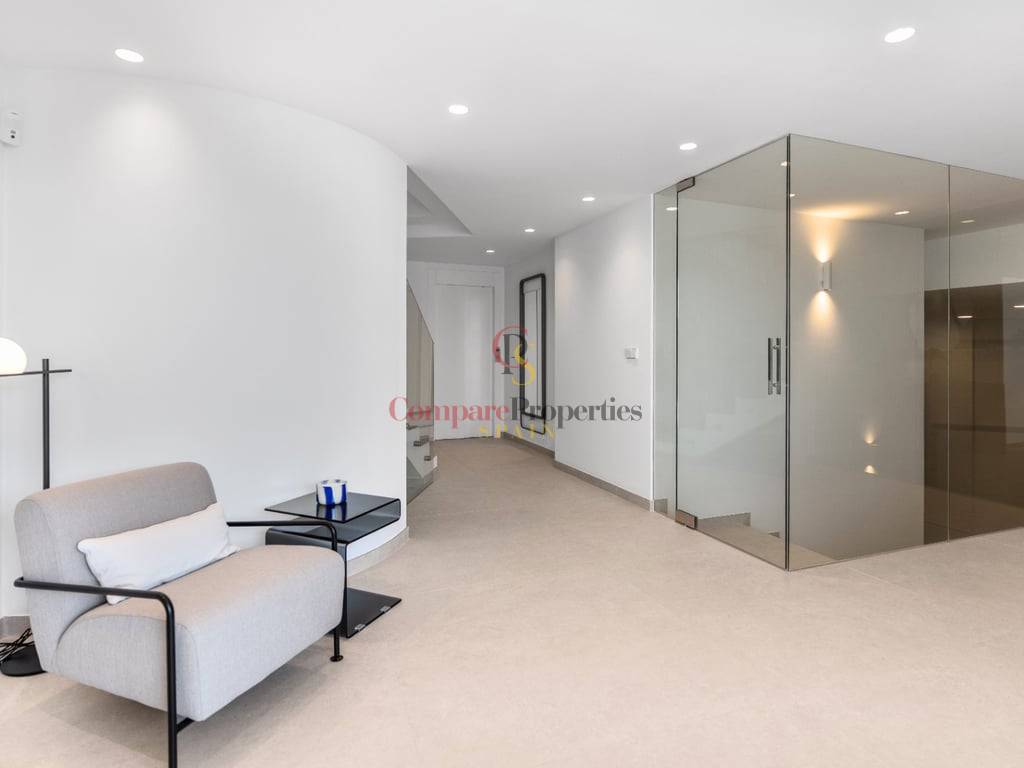 BLANC19, an exquisite residence in ALTEA, is a FOURSTOREY HOUSE with a prime location between the BLUE SEA and PINE GREENERY. Its design HARMONIZES WITH THE LANDSCAPE, offering IMPRESSIVE VIEWS of the Mediterranean, coastal forests, and the urban profile of BENIDORM from its terraces—providing a UNIQUE EXPERIENCE every day.