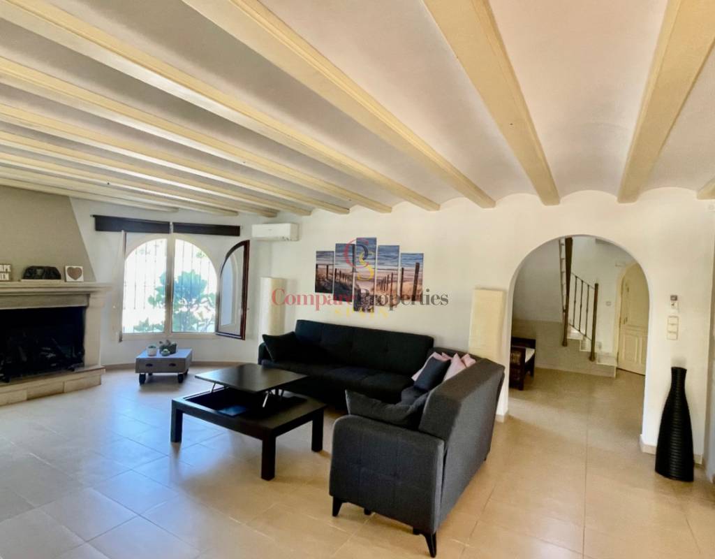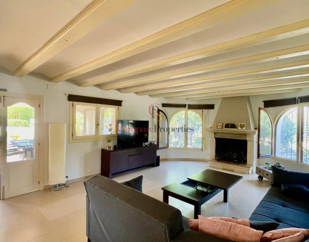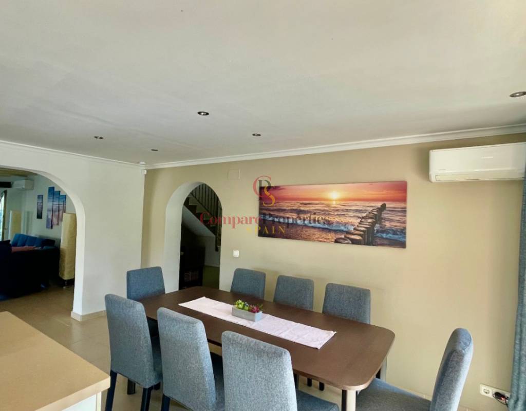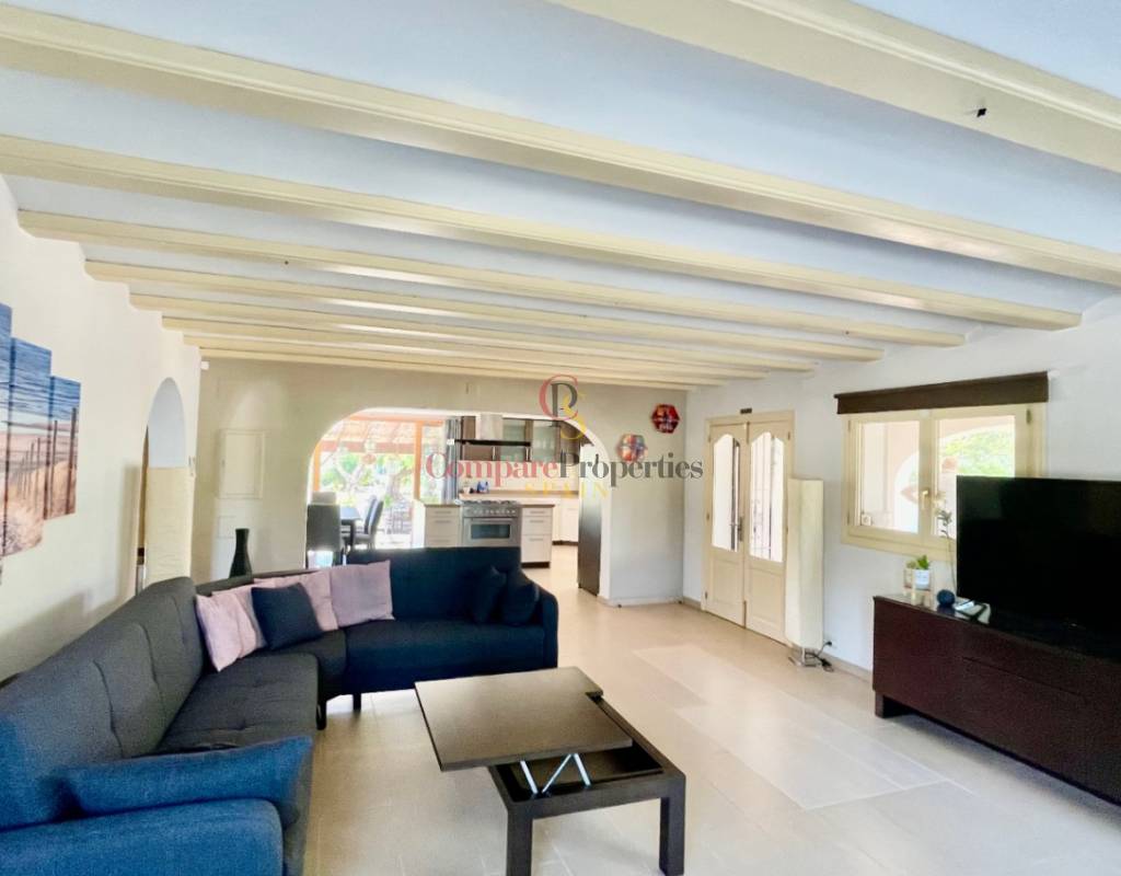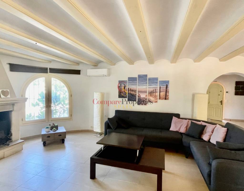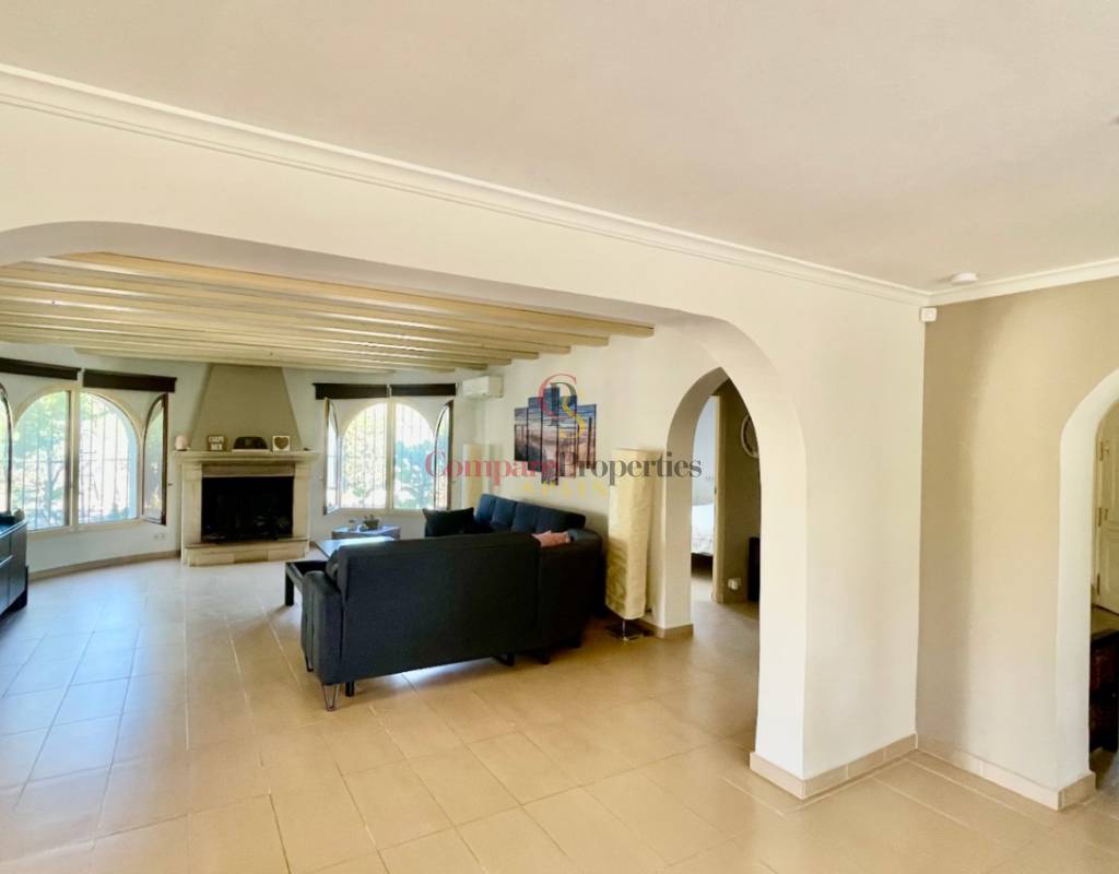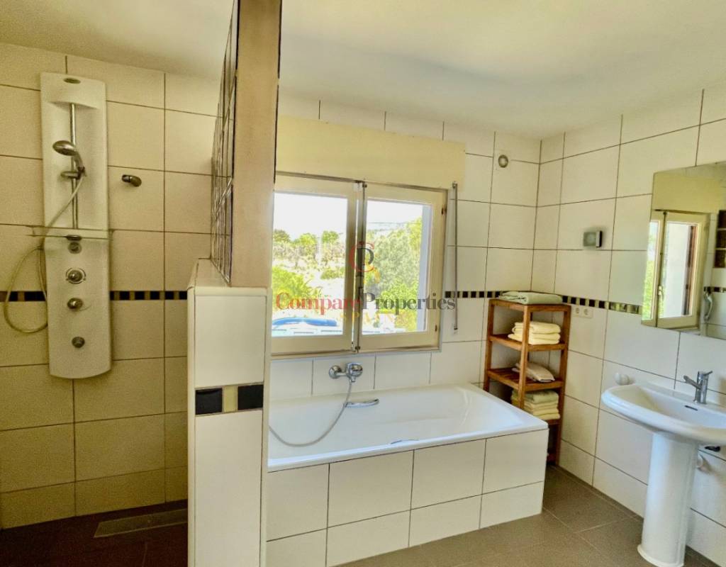 A fabulous, substantial detached family residence situated on a flat south-facing plot within easy walking distance to the town of Jalon. This spacious accommodation comprises an entrance porch leading to a large reception area, an open plan light & airy 80m2 lounge dining kitchen area with featured tosca fireplace, two separate hot and cold air conditioning units, patio doors to open covered naya, a fully fitted luxury kitchen with central cooking island and double patio doors to private wooden pergola perfect for al fresco dining / chill out area. On this level, you will also find a guest double bedroom with fitted wardrobes, a guest toilet, and an additional large utility kitchen room with an external door leading to a private terrace area, which could be converted into another bedroom with an ensuite bathroom. A beautiful marble staircase leads to an upstairs landing, a large master bedroom suite with a featured tosca fireplace and wood-beamed gallery ceiling, patio doors to a private open covered naya with fabulous panoramic views, and a large ensuite bathroom with a separate walk-in shower. There are two further large double bedrooms and a family bathroom with a separate walk-in shower. Outside you will find a large 12m x 6m pool with a private 150m2 sun terrace and a stone-built 25m2 storage casita. The property is fully secured with six cameras, an alarm system, and sensors on all doors and windows. It is on a flat plot with automatic gates and ample off-street parking for cars and campervans. The villa has an established Mediterranean garden with featured palm trees and various fruit trees and has an additional adjacent building plot, which currently has 23 solar panels installed for energy efficiency, but could have a separate private access road from the main entrance with outlined planning permission to build an additional dwelling. This property benefits from partial double glazing, electric wall heaters, and many special features and must be viewed to appreciate its private flat plot and easy access to the town of Jalon with its array of amenities.