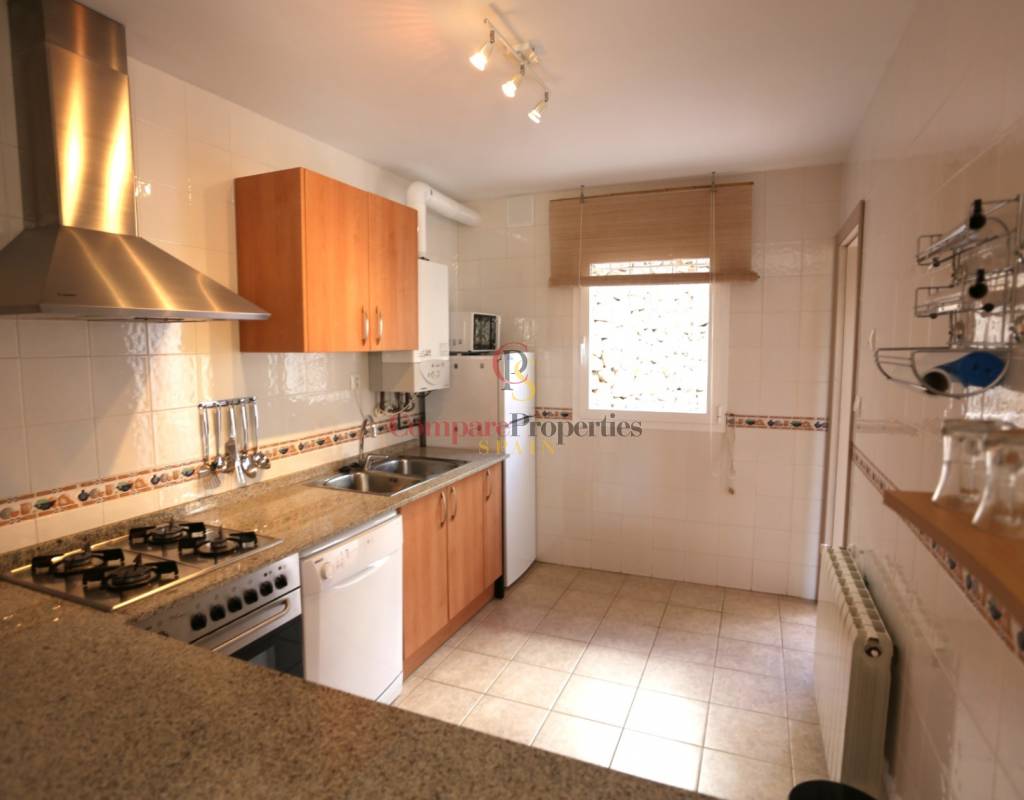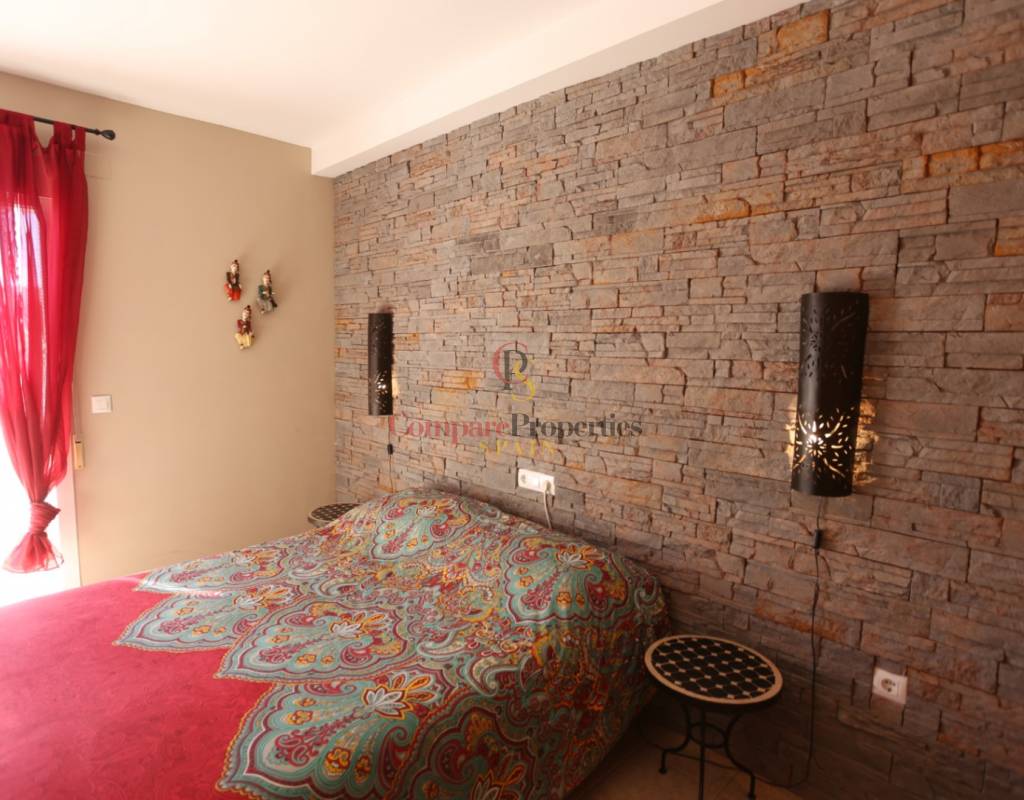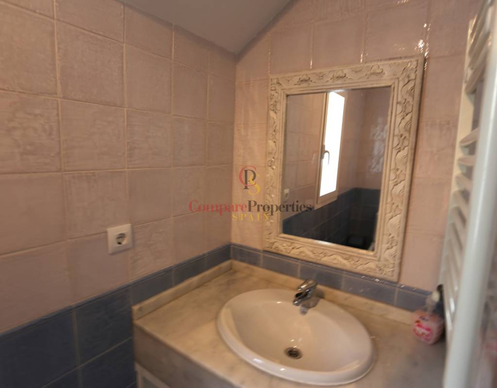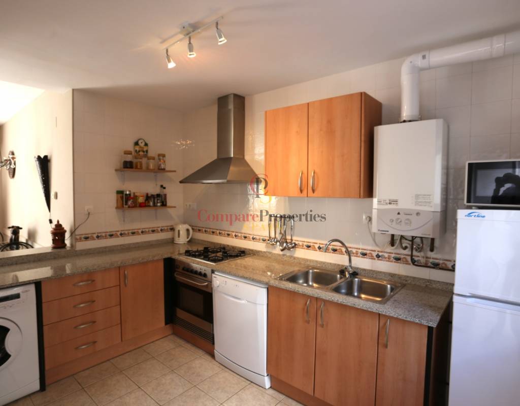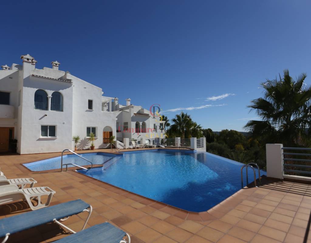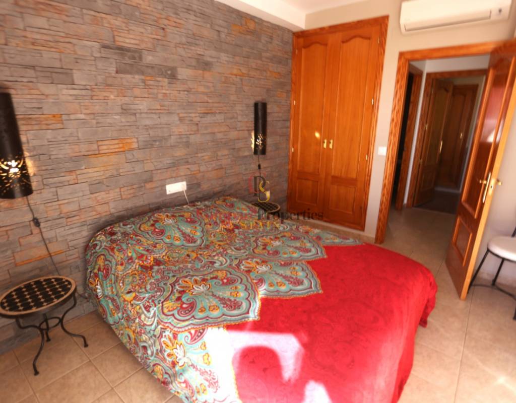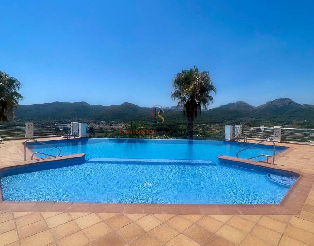 Located on an exclusive development just a short distance from the charming town of Jalon, this beautifully presented south-facing linked townhouse offers modern, light-filled living with stunning views across the valley. The property features a spacious open-plan lounge and dining area with a stylish log-effect gas fire, hot and cold air conditioning, and sliding patio doors that lead to a covered naya and a private enclosed sun terrace, perfect for relaxing or entertaining. The fully fitted kitchen includes a convenient hatch/breakfast bar, and there is also a guest toilet on the ground floor. Upstairs comprises a bright master bedroom with fitted wardrobes, air conditioning, and direct access to a private sun terrace, a second double bedroom with fitted wardrobes and a ceiling fan, and a generous family walk-in shower room. Additional benefits include metered gas central heating, double glazing throughout, and off-street parking within the complex. The small, well-maintained development boasts a fabulous infinity communal pool with poolside shower and sun terrace areas, all enjoying breathtaking panoramic views of the Jalon Valley. Ideal as a permanent residence, lock-up-and-leave holiday home, or rental investment, this stylish property is presented in excellent condition and must be seen to be fully appreciated.