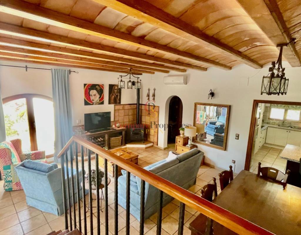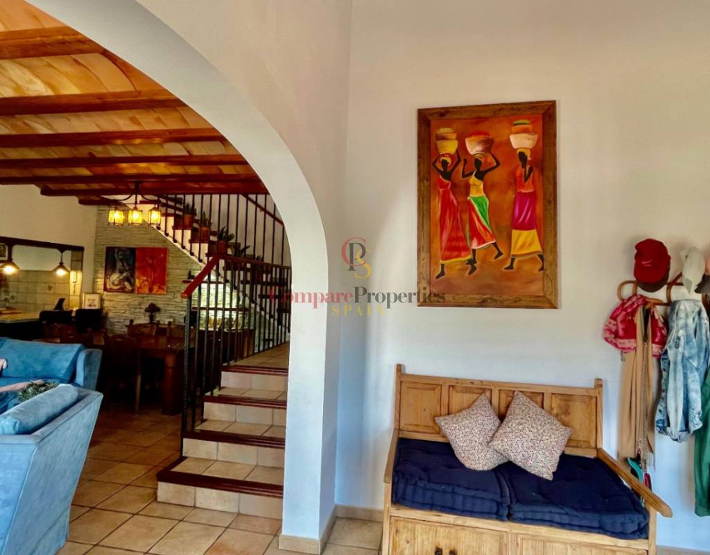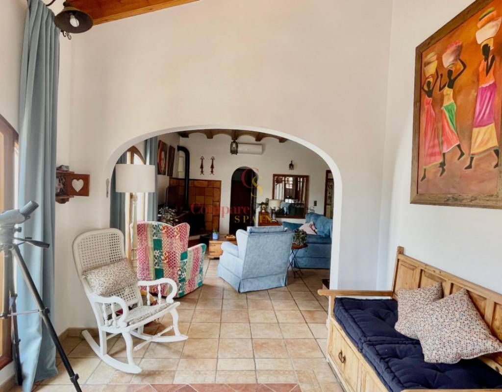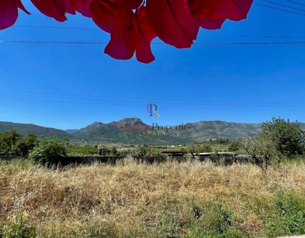 A modern Spanish village home that beautifully preserves its traditional charm while offering a unique contemporary ambience. Set on a prime, private, south-facing frontline flat plot with breathtaking panoramic views, this exceptional property is just a 3-minute walk from the centre of Alcalalí and includes a separate two-bedroom guesthouse.