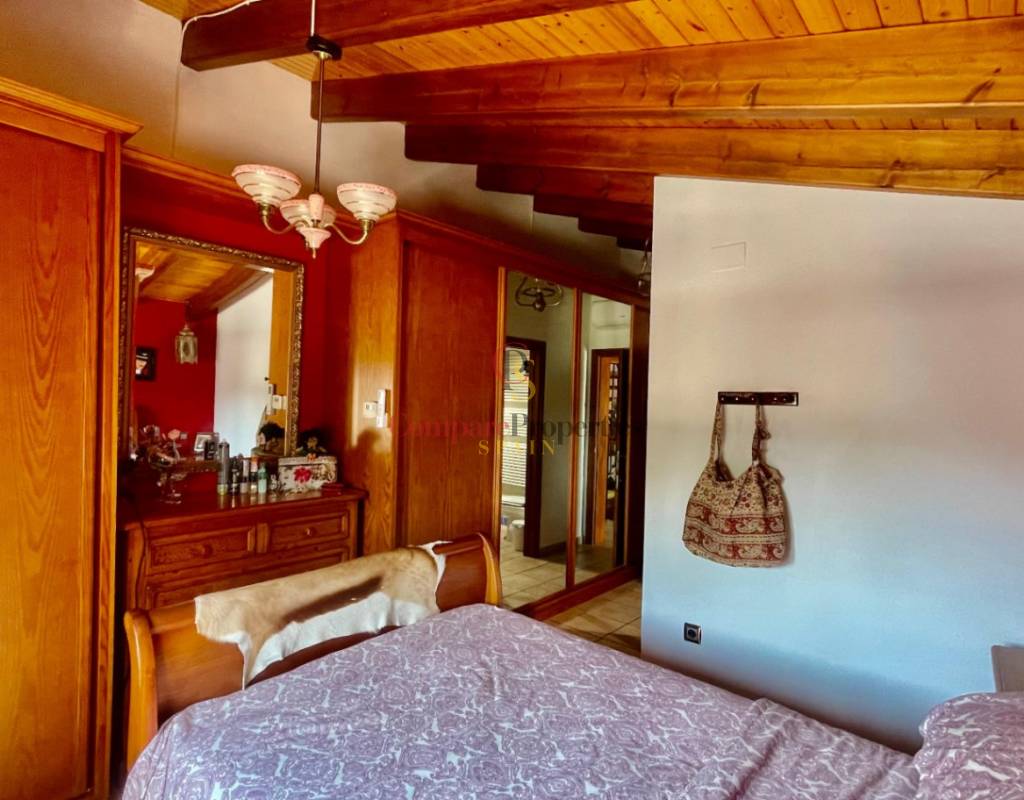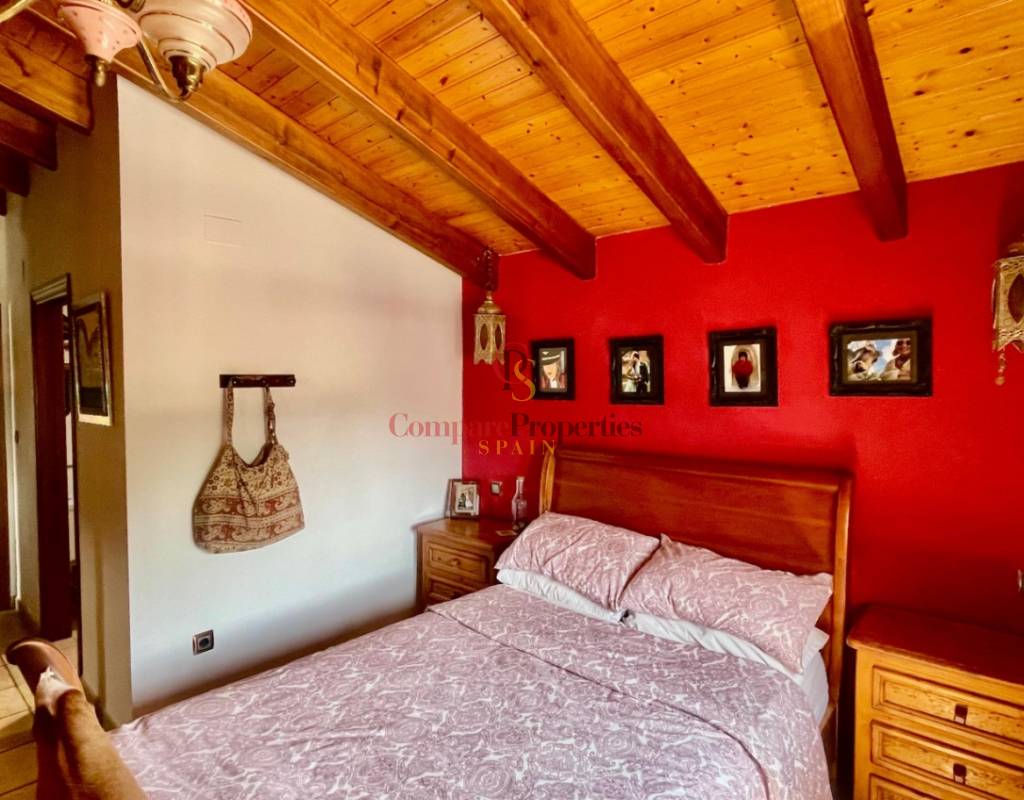 The main house comprises an open covered gallery wooden beamed ceiling naya with entrance door to an 80m2 open plan reception lounge dining area with large feature double arched patio windows, and wood beamed ceilings, corner wood burner, underfloor heating and hot and cold air conditioning, guest toilet, large open plan fully fitted kitchen with breakfast island, utility pantry area with external door leading to an outside paella cooking area. From the lounge, three steps lead up to the master bedroom with pitched wood-beamed ceilings, built-in sliding fitted wardrobes, hot and cold air conditioning, and an ensuite walk-in shower room. Upstairs, you will find a spacious reception lounge area, a hallway leading to three double bedrooms, all with pitched wood-beamed ceilings, sliding fitted wardrobes, loft mezzanine storage areas, and hot and cold air conditioning. On this level, you have one ensuite shower room and an additional family bathroom.