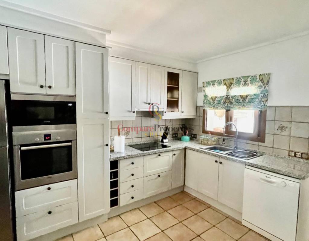The separate, self-contained guest house, attached to the main house, shares the same spectacular views and has its own private garden with open, south-facing covered naya. Accommodation comprises an entrance door leading to a lounge dining area with wood beam gallery ceiling, hot and cold air conditioning, separate fitted kitchen, guest toilet, hallway to spacious master bedroom with sliding fitted wardrobes, dressing area and hot and cold air conditioning, a double bedroom with access to the external secured courtyard. This guest house can be accessed, if required, from the main house via the internal staircase to the garage. It is perfect for multi-generational living or could be used commercially, as it is currently, providing an additional rental income.
