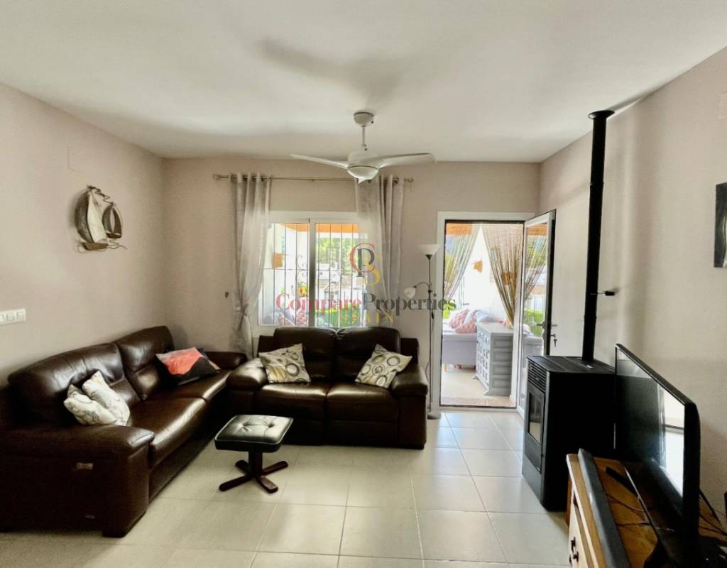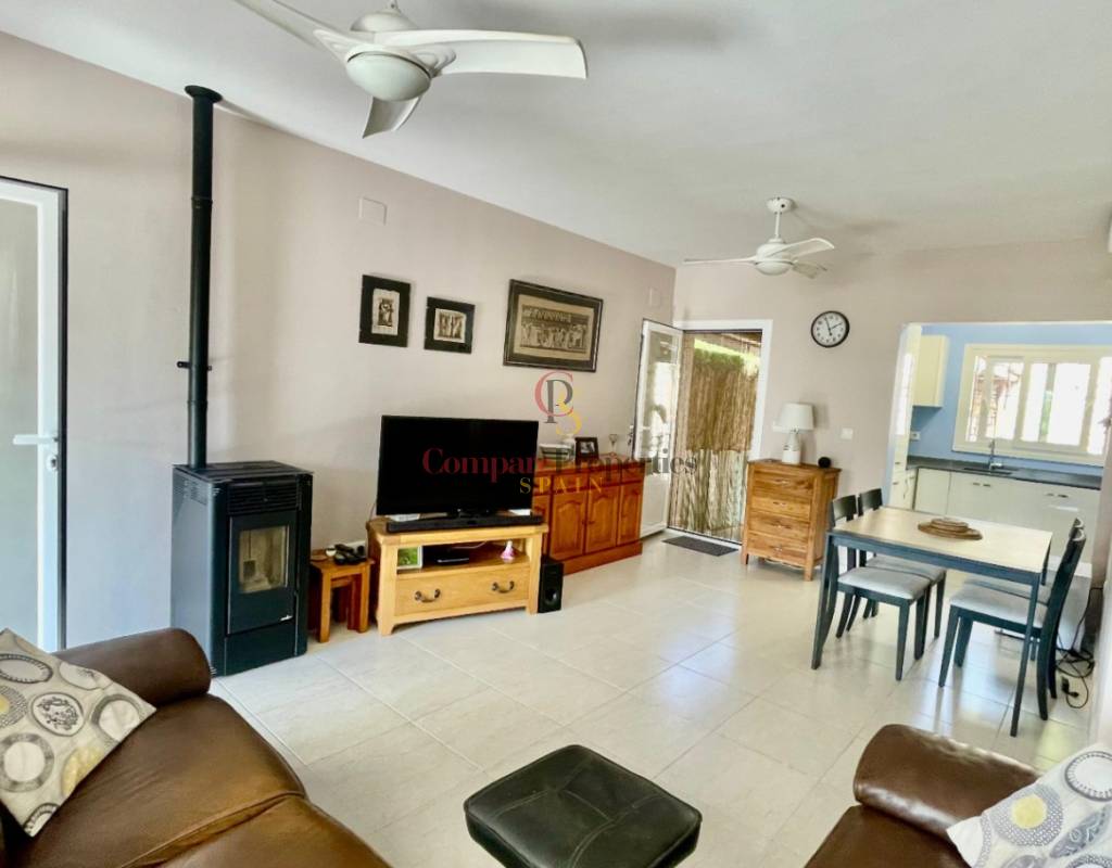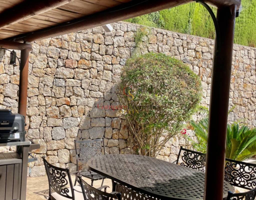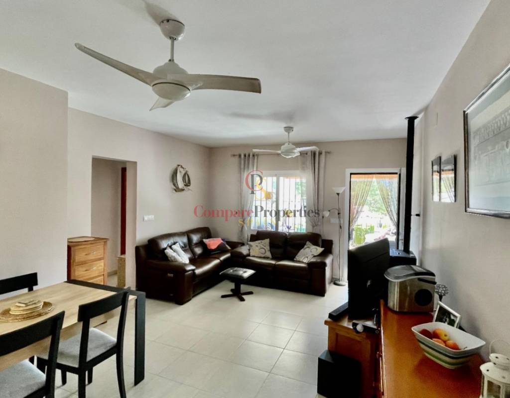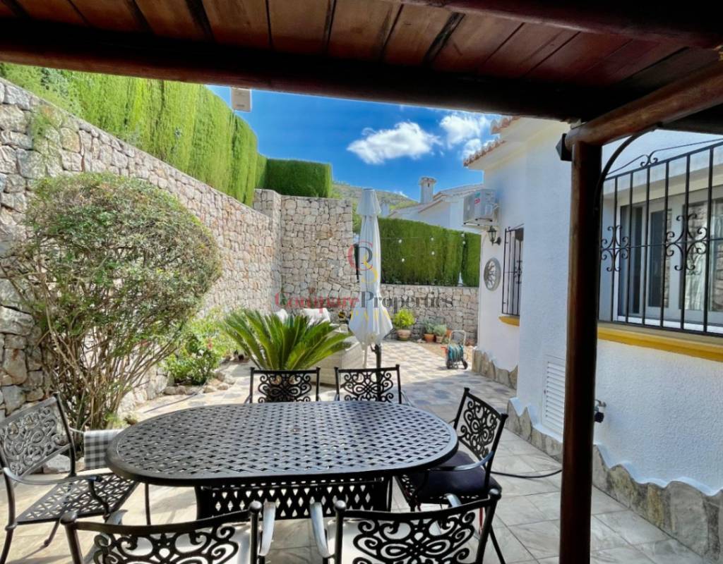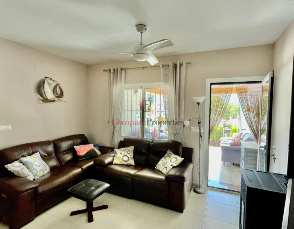 An immaculate, south-facing luxury semi-detached villa offering spectacular mountain and valley views, located on a sought-after, well-maintained urbanisation. Recently reformed, the home features a bright glass-curtained naya with high wood-beamed ceilings, a spacious open-plan lounge and dining area with pellet stove, air conditioning, and ceiling fans, plus a fully fitted luxury kitchen opening onto a private al fresco dining terrace with wood pergola, feature dry-stone walls – perfect for entertaining. The villa includes two double bedrooms with fitted wardrobes, air conditioning, ceiling fans, and a stylish walk-in shower room. Additional highlights include new double-glazed windows, energy-efficient solar hot water, an underbuild storage room, a secure low-maintenance south-facing garden, and off-street parking. There is fibre internet on the urbanisation. Residents enjoy access to a beautifully maintained communal pool with facilities, and the property is within walking distance of a popular restaurant, just minutes from Orba, Jalon, and Murla, and a short drive to Denia’s beaches, Javea, Moraira, and Calpe. This easy-access home must be viewed to appreciate its many special features and stunning views across the Jalon Valley.