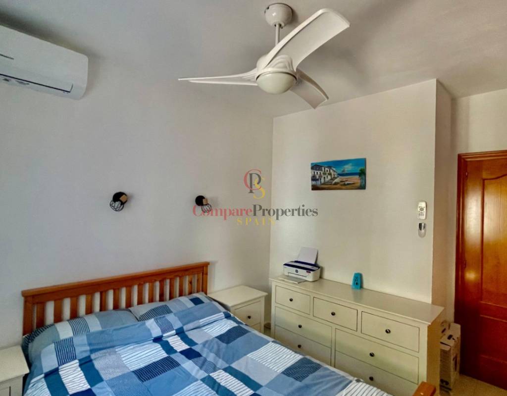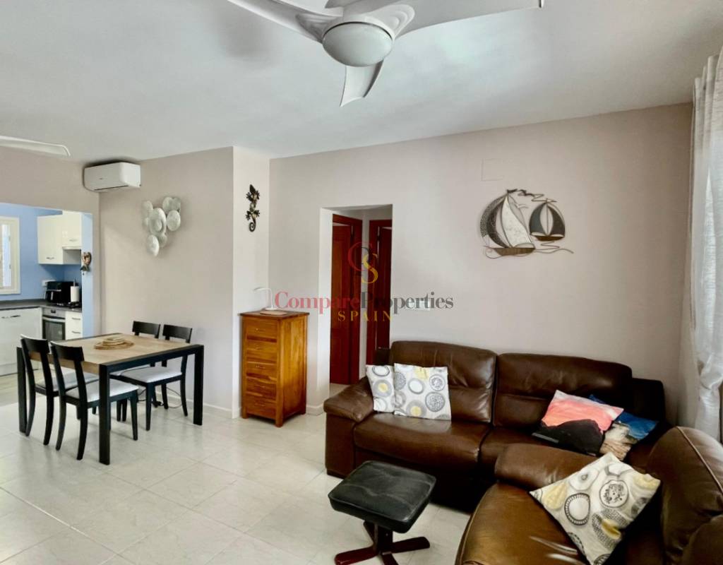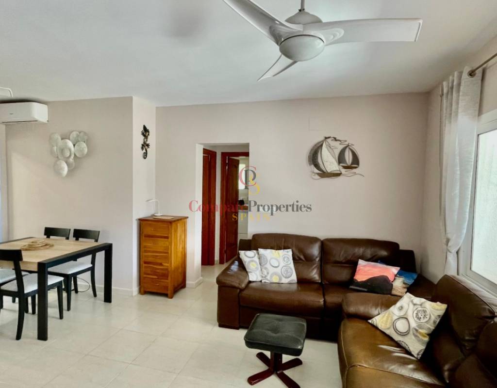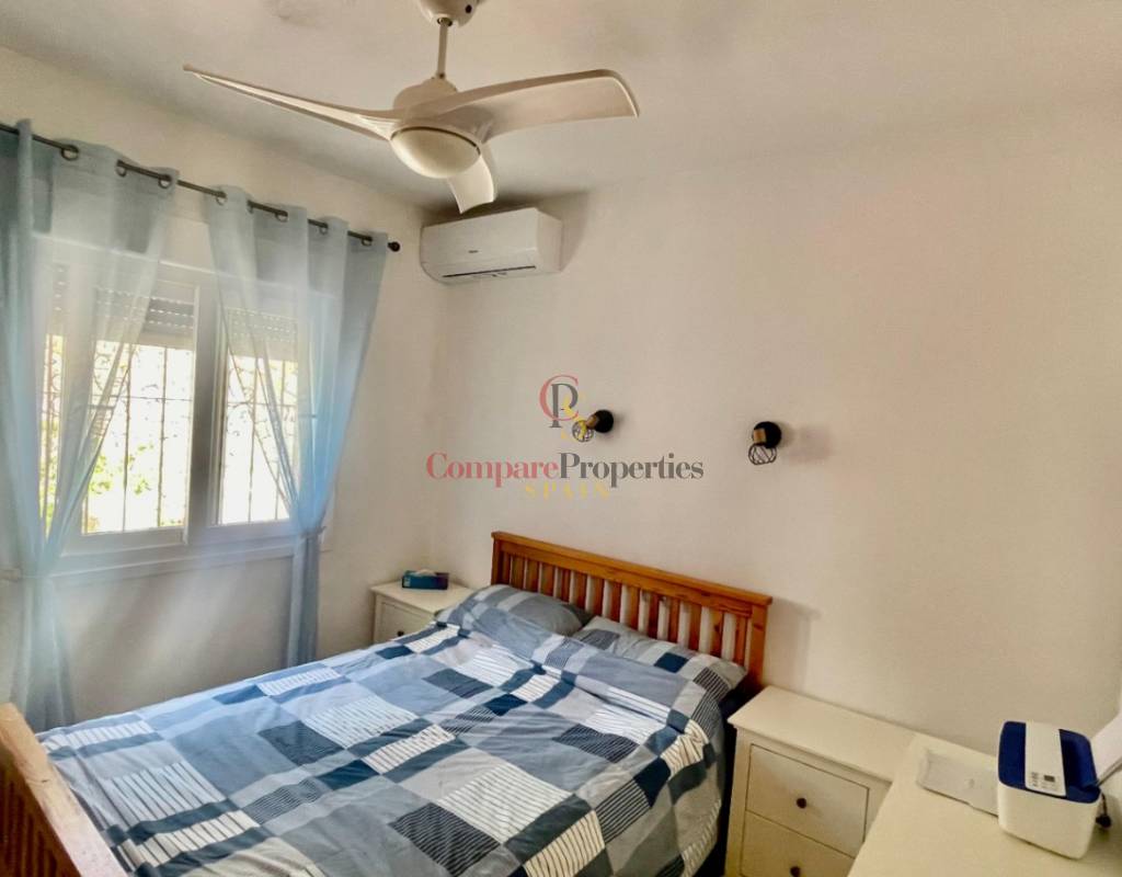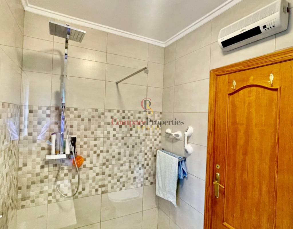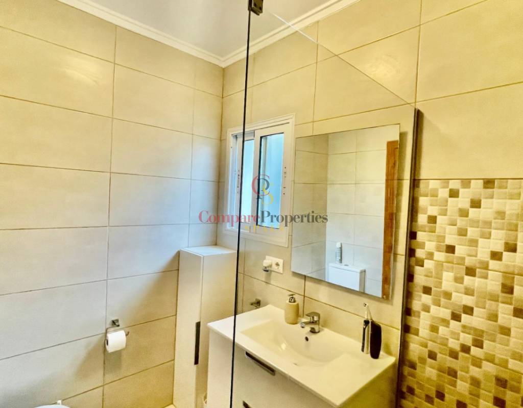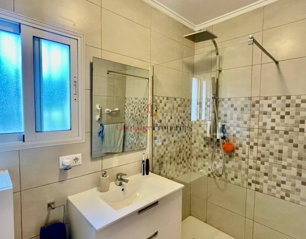 An immaculate, south-facing luxury semi-detached villa offering spectacular mountain and valley views, located on a sought-after, well-maintained urbanisation. Recently reformed, the home features a bright glass-curtained naya with high wood-beamed ceilings, a spacious open-plan lounge and dining area with pellet stove, air conditioning, and ceiling fans, plus a fully fitted luxury kitchen opening onto a private al fresco dining terrace with wood pergola, feature dry-stone walls – perfect for entertaining. The villa includes two double bedrooms with fitted wardrobes, air conditioning, ceiling fans, and a stylish walk-in shower room. Additional highlights include new double-glazed windows, energy-efficient solar hot water, an underbuild storage room, a secure low-maintenance south-facing garden, and off-street parking. There is fibre internet on the urbanisation. Residents enjoy access to a beautifully maintained communal pool with facilities, and the property is within walking distance of a popular restaurant, just minutes from Orba, Jalon, and Murla, and a short drive to Denia’s beaches, Javea, Moraira, and Calpe. This easy-access home must be viewed to appreciate its many special features and stunning views across the Jalon Valley.