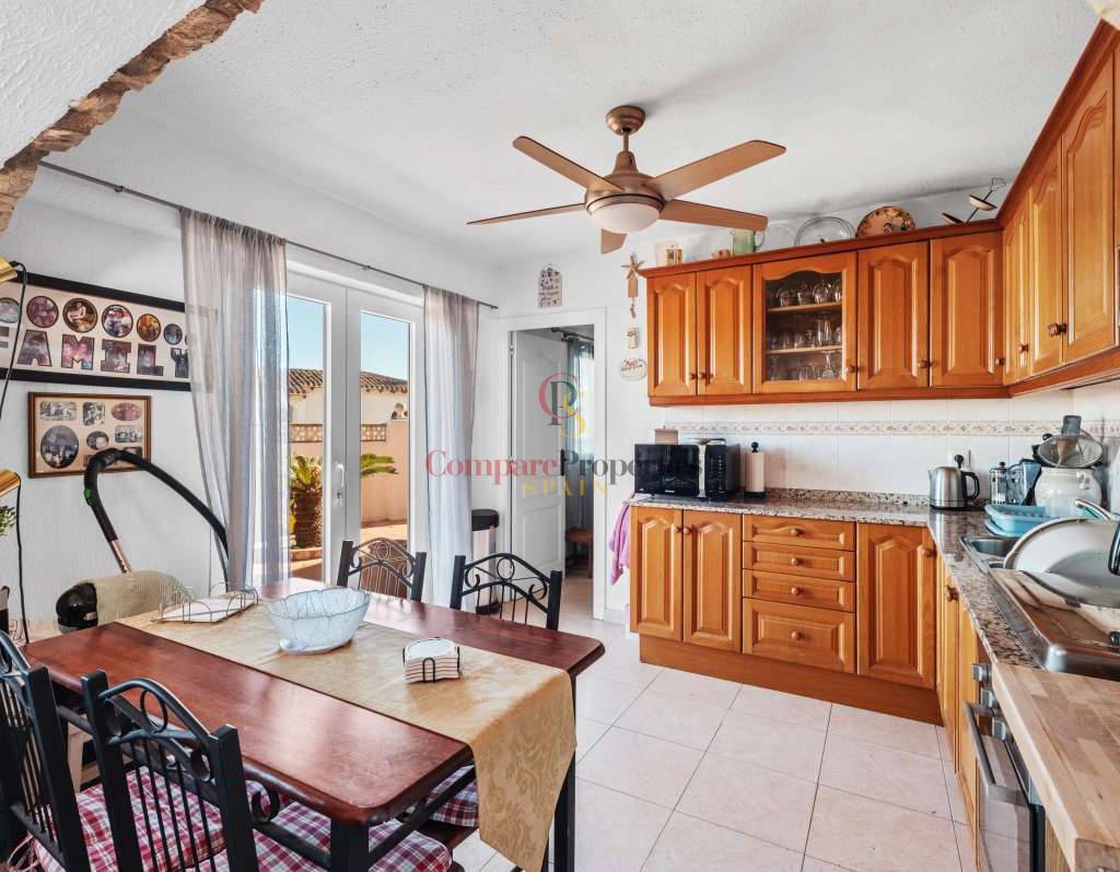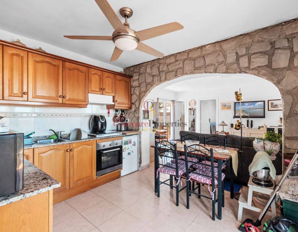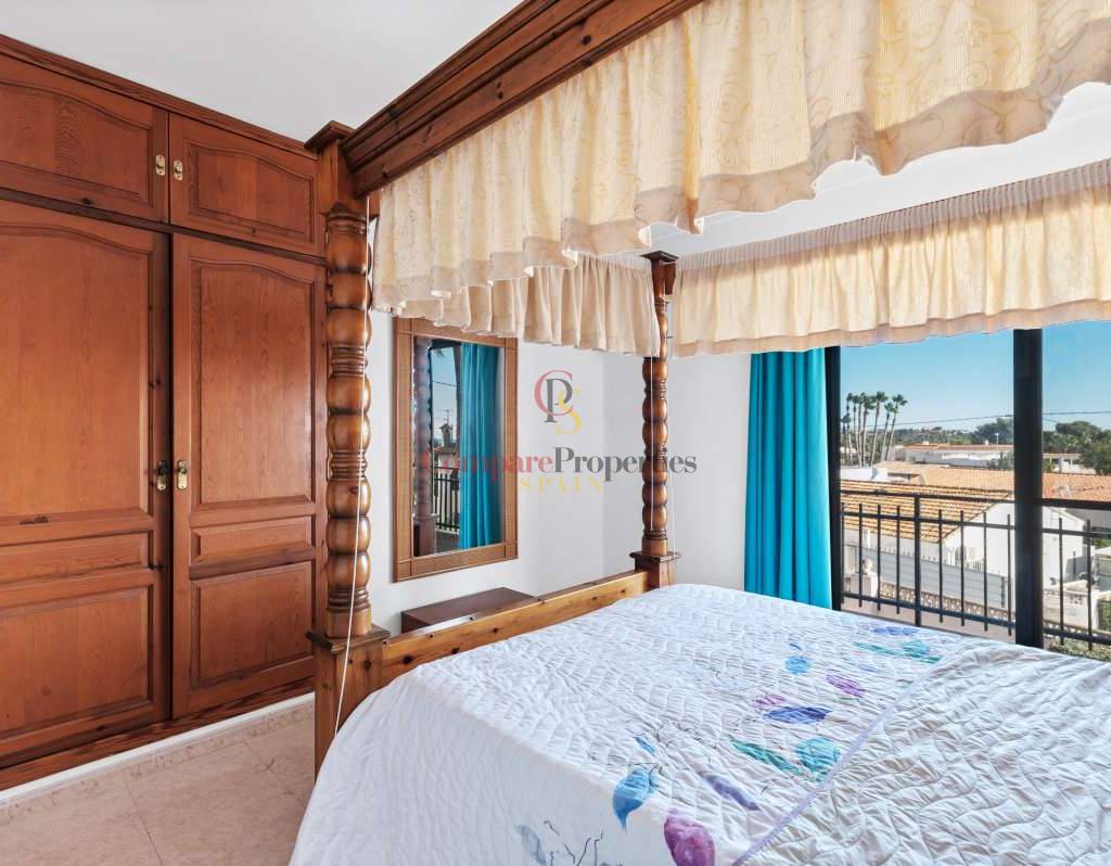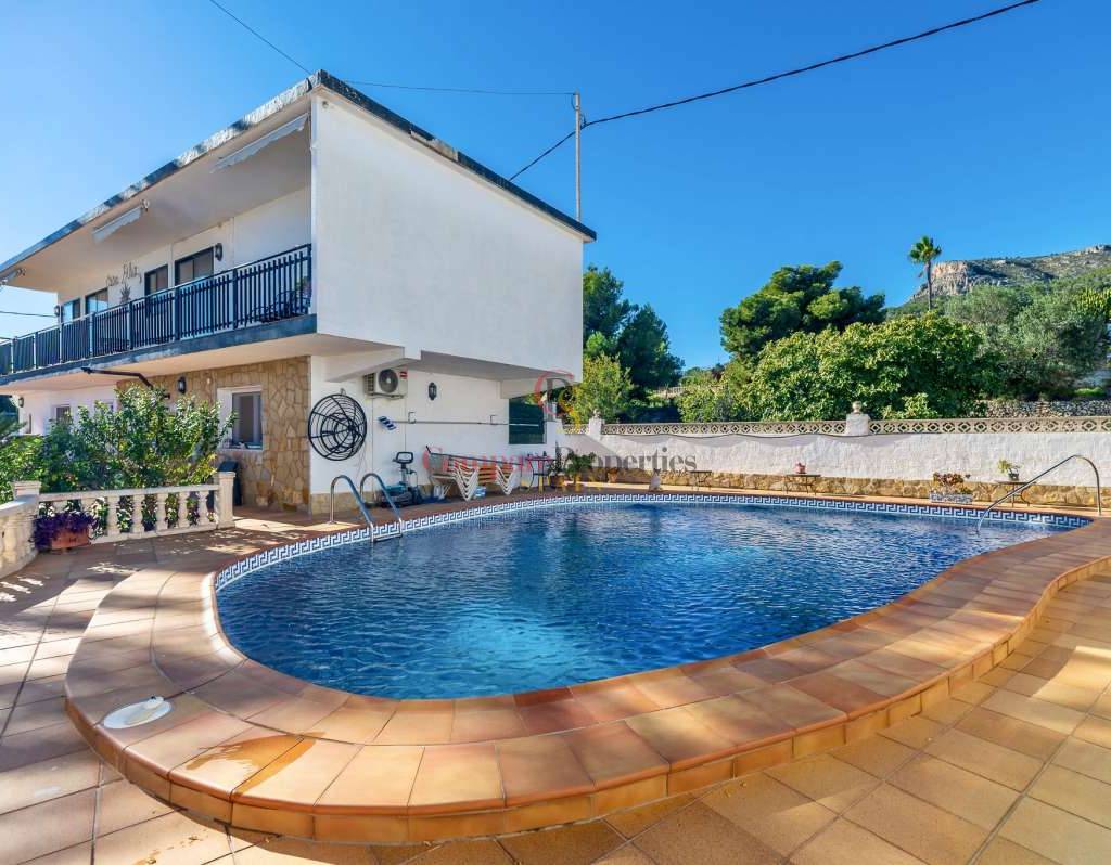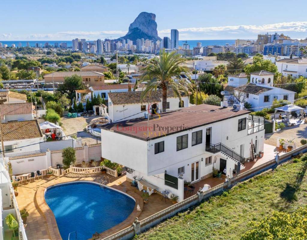 Surrounded by peaceful greenery and bathed in soft Mediterranean light, this charming villa invites you into a world of comfort, privacy, and panoramic beauty. Every corner of the home feels welcoming — from the sunny terraces to the gentle sea breeze that reaches the upper floor.Built in 1980 on a 718 sqm plot, the property offers 198 sqm of living space distributed across two completely independent levels, creating an ideal setting for large families, guests, or rental opportunities.Outside, the villa blends lifestyle and leisure: a lush garden, private parking, a cozy summer kitchen, generous terraces, and your own private pool. In addition, the community provides access to a large shared pool, enhancing the sense of relaxation and enjoyment.The main floor is designed for everyday comfort. It features a bright living room, a functional kitchen with direct access to the terrace and pool area, a bedroom, a full bathroom, and a master suite with its own bathroom — a peaceful retreat with views of the outdoors.The upper floor offers an independent haven with a spacious living room, an open kitchen, and access to a beautiful terrace overlooking the sea and the iconic Calpe skyline. From the corridor, two well-lit bedrooms and a shared bathroom complete the level, each room offering pleasant views and access to the balcony.With its flexible layout, serene surroundings, and captivating views, this villa is more than a home — it’s an opportunity to create the lifestyle you’ve always imagined. Whether you seek tranquility, investment potential, or a place to gather unforgettable moments, this property opens the door to all of it.
