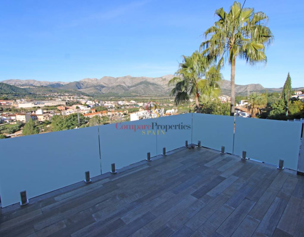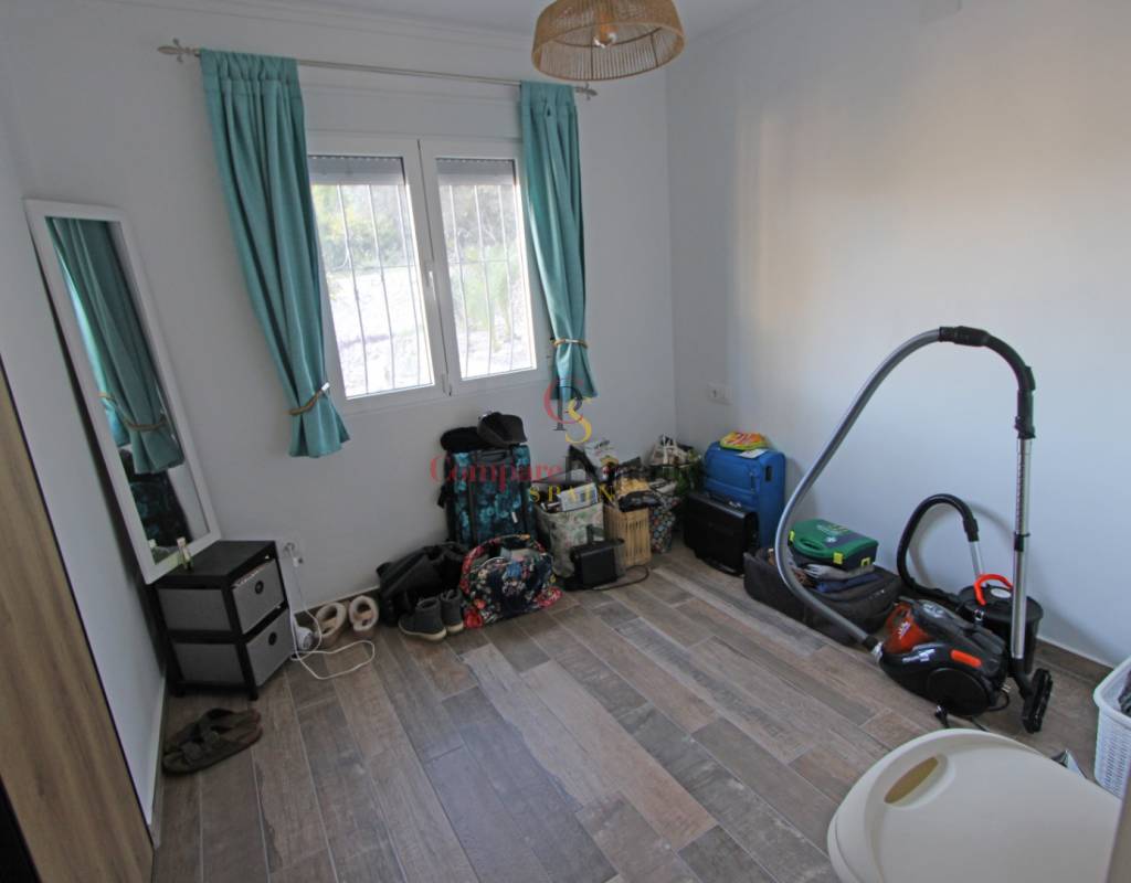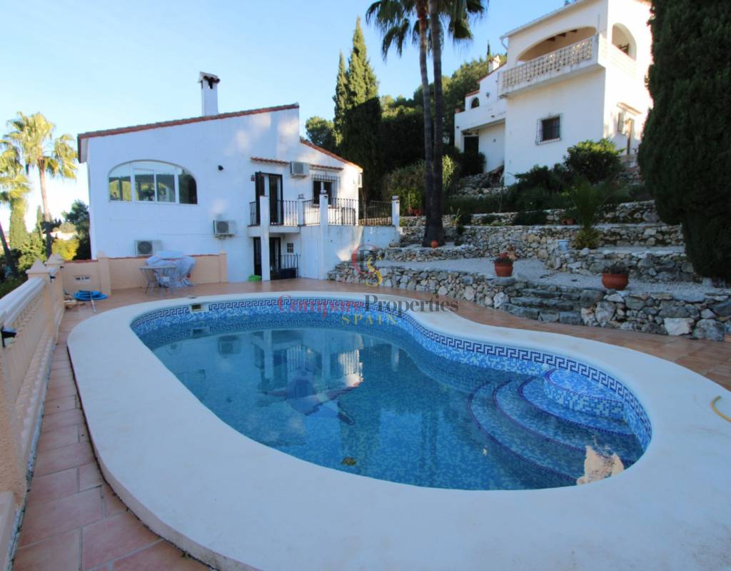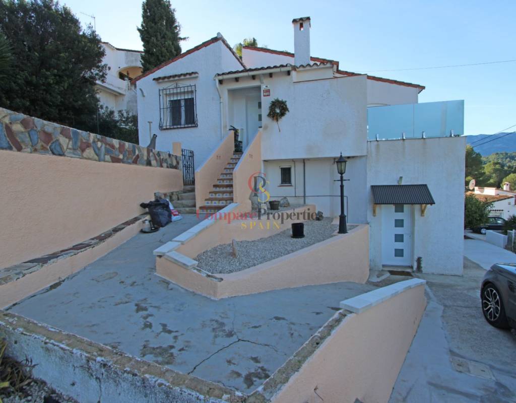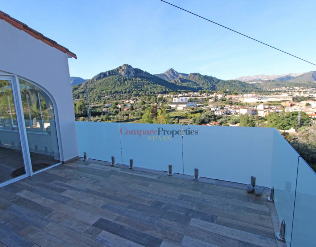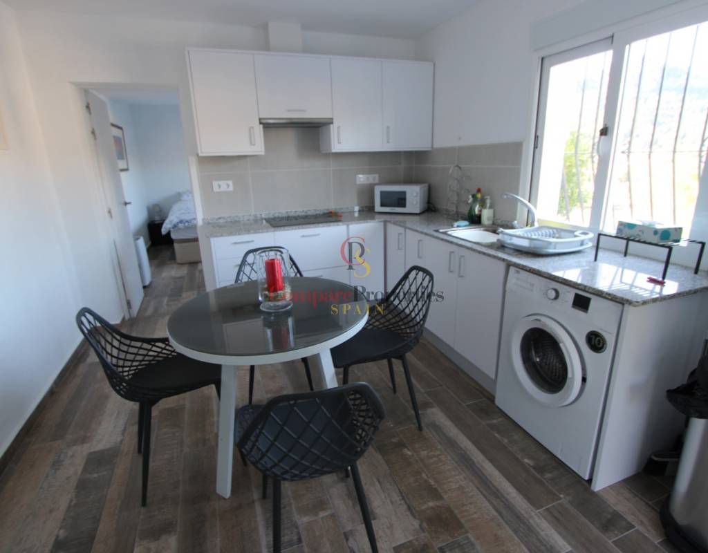 Villa with pool for sale in Orba (Costa Blanca). It consists of two floors with the following layout: The first floor is distributed into a living-dining room, an open kitchen, an open terrace, two bedrooms with built-in wardrobes and a bathroom. On the ground floor, there is an apartment with a living-dining room, an independent kitchen, a bedroom and a bathroom. Additionally, it features air conditioning, a pellet fireplace, TV/Sat, double glazing, a laundry room, an alarm system and an 8 x 4 m pool. The property is located very close to all services such as supermarkets and restaurants. The nearest beaches are 15 minutes away. The largest shopping center in the area is in Ondara, about 10 minutes by car, as well as the highway to Valencia (1h) and Alicante (1h).