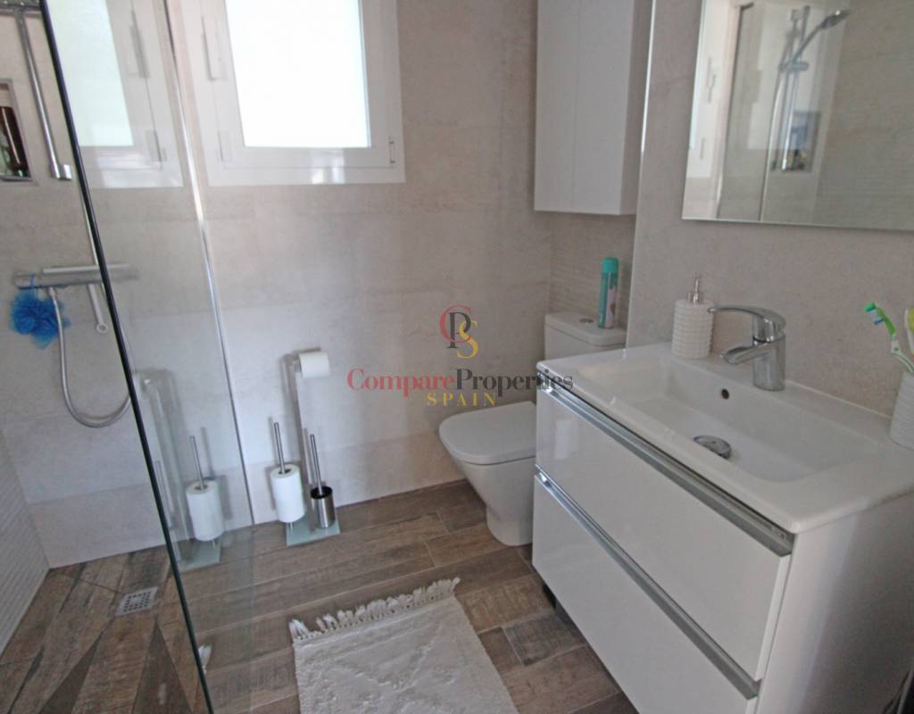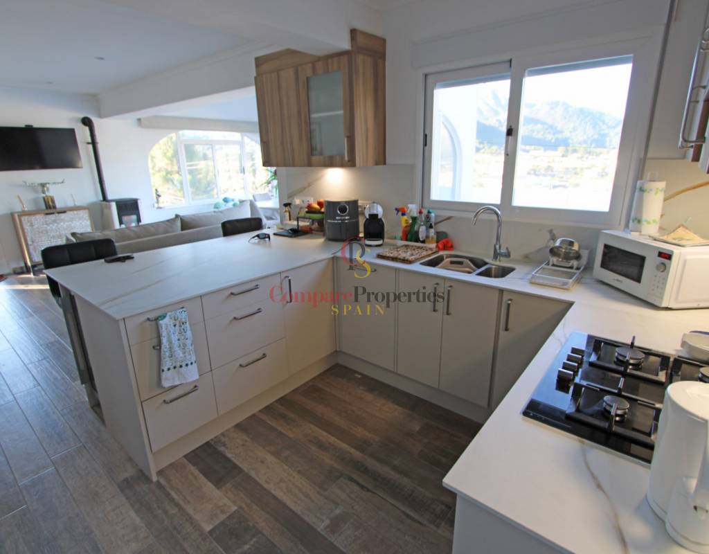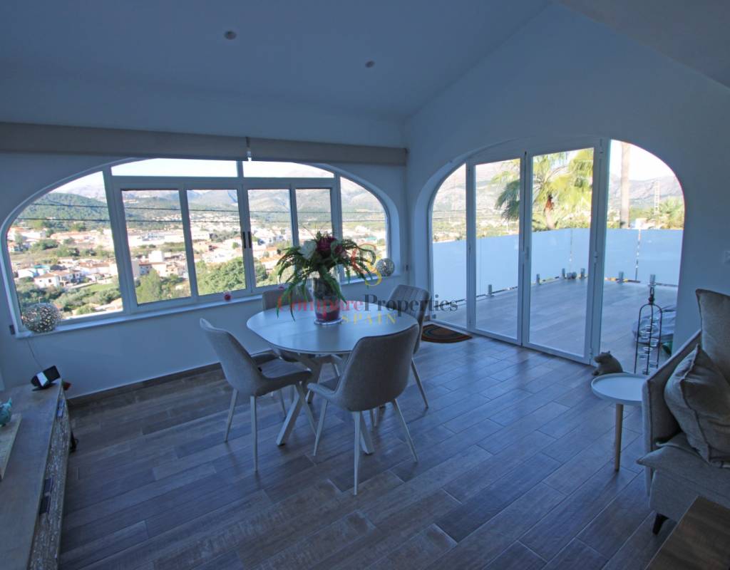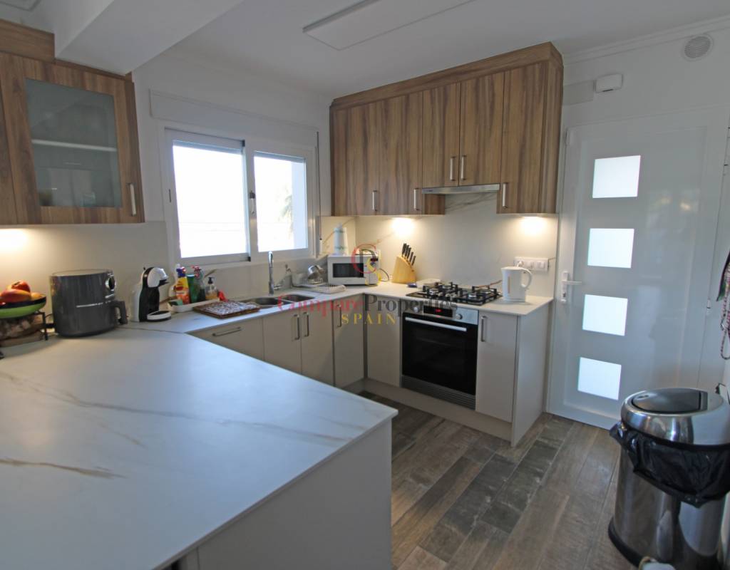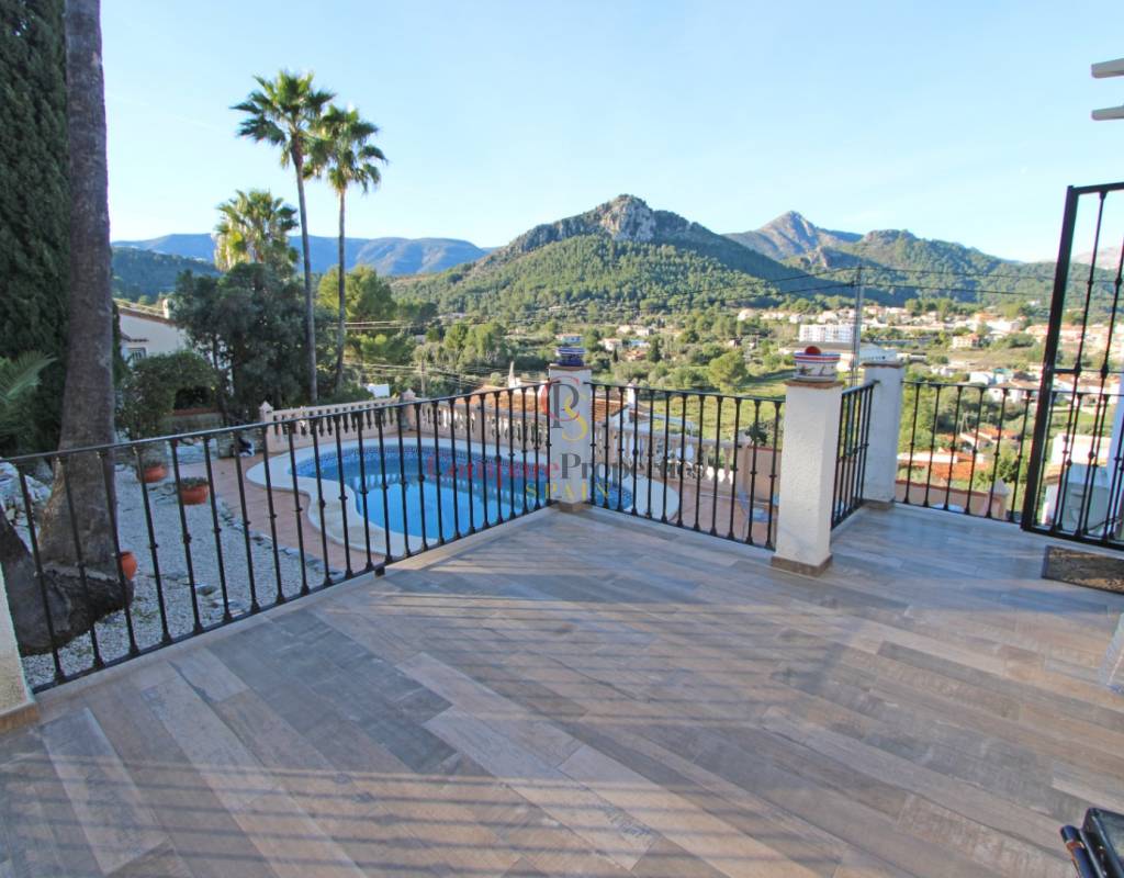 Villa with pool for sale in Orba (Costa Blanca). It consists of two floors with the following layout: The first floor is distributed into a living-dining room, an open kitchen, an open terrace, two bedrooms with built-in wardrobes and a bathroom. On the ground floor, there is an apartment with a living-dining room, an independent kitchen, a bedroom and a bathroom. Additionally, it features air conditioning, a pellet fireplace, TV/Sat, double glazing, a laundry room, an alarm system and an 8 x 4 m pool. The property is located very close to all services such as supermarkets and restaurants. The nearest beaches are 15 minutes away. The largest shopping center in the area is in Ondara, about 10 minutes by car, as well as the highway to Valencia (1h) and Alicante (1h).