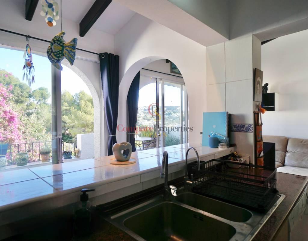 Walking distance to services: 600mWalking distance to Sea & Moraira centre: 1.8kmAirconditioning H/CBeautiful open views from living area and balconyLarge communal swimming pool with spacious sun terracePrivate parkingPotential to modernise or personalise