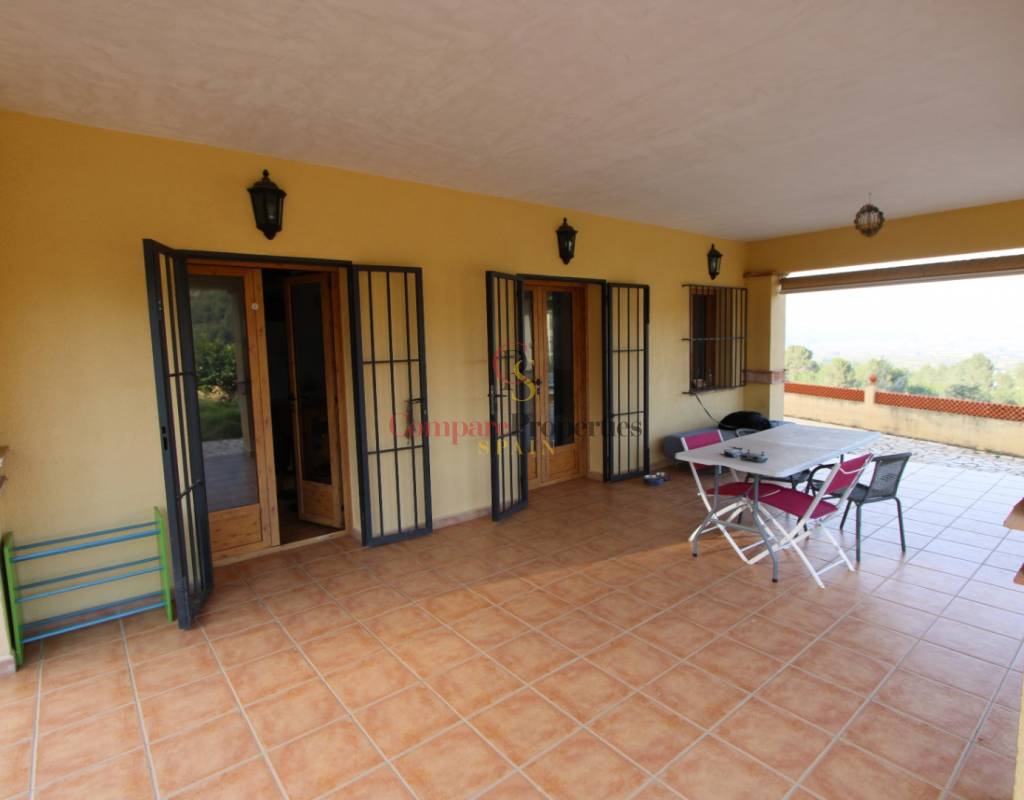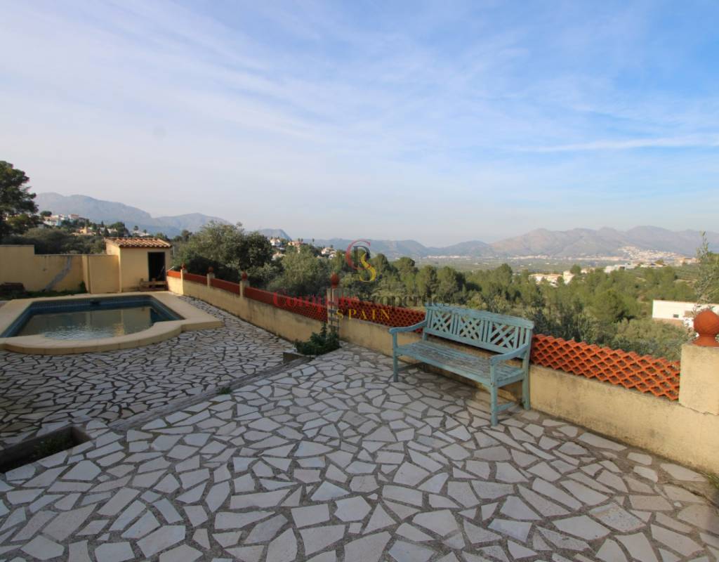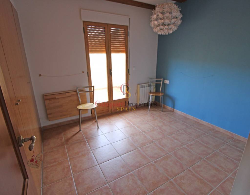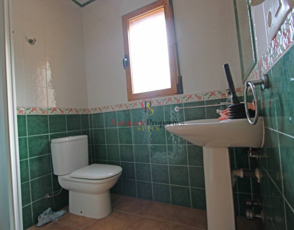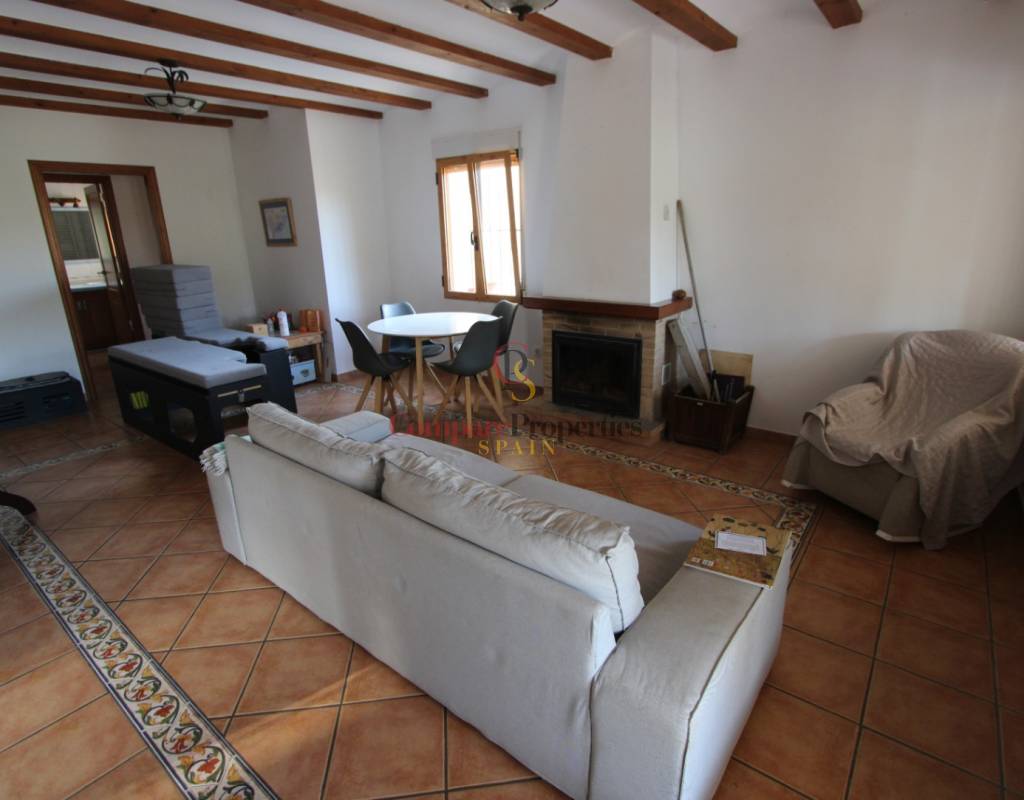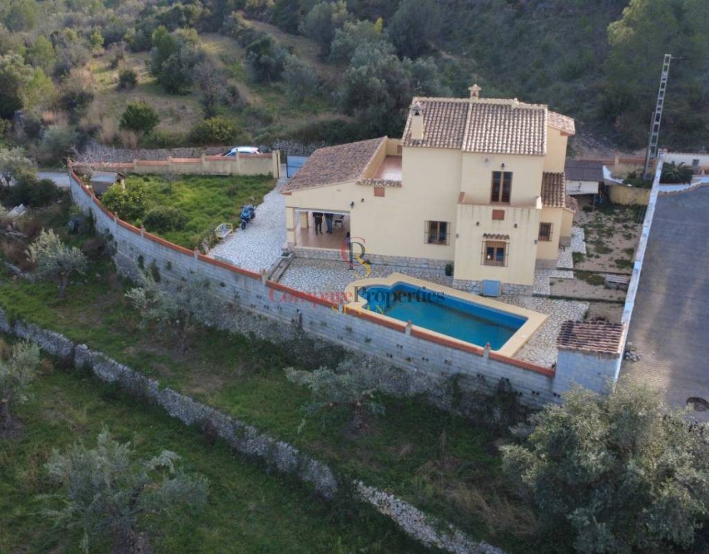 Villa with pool for sale in Orba (Costa Blanca). The villa has two floors with the following layout: The first floor is distributed into a living-dining room, independent kitchen, covered terrace, one bedroom and two bathrooms. On the upper floor, there is an open terrace, 3 bedrooms and one bathroom. It also features electric radiators, a fireplace, and a 8 x 4 m swimming pool. There is parking for 3 cars. The property is very close to all services such as supermarkets and restaurants. The nearest beaches are 15 minutes away. The largest shopping center in the area is in Ondara, about 10 minutes by car, as well as the highway to Valencia (1h) and Alicante (1h).