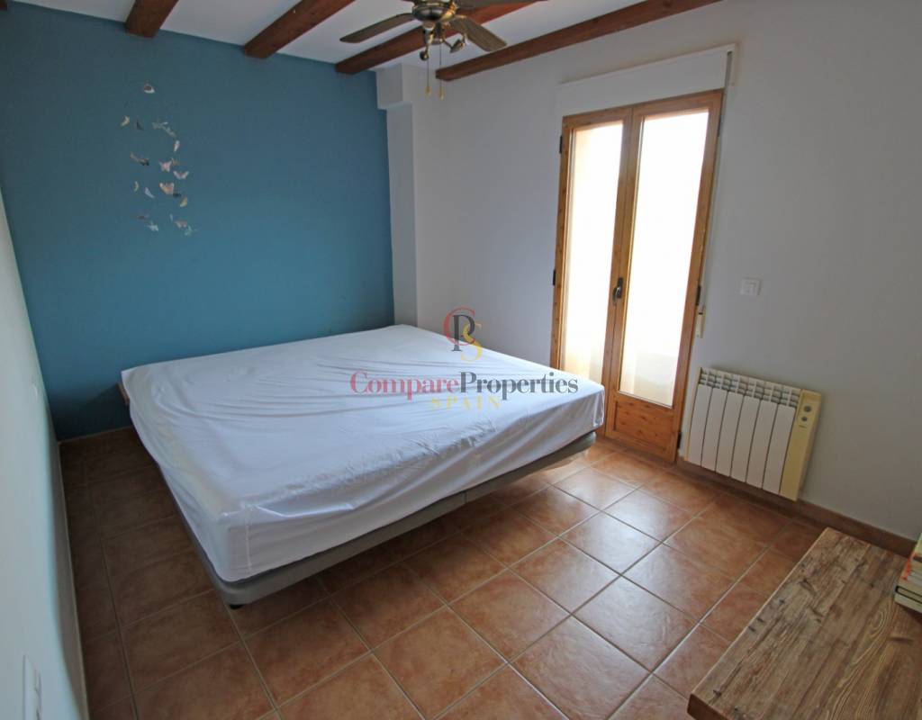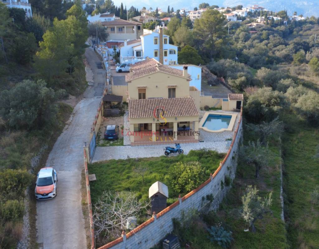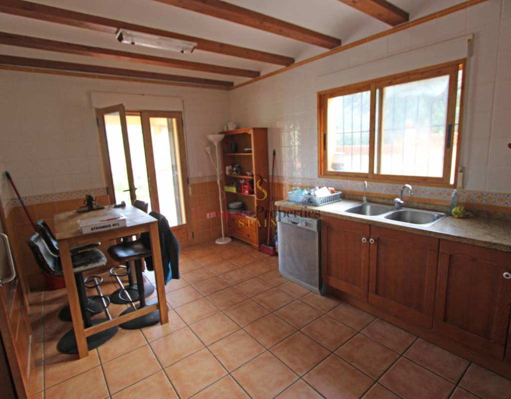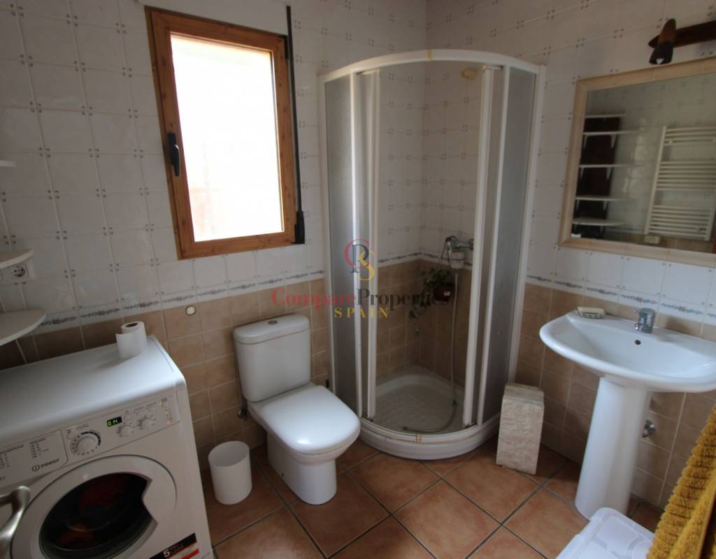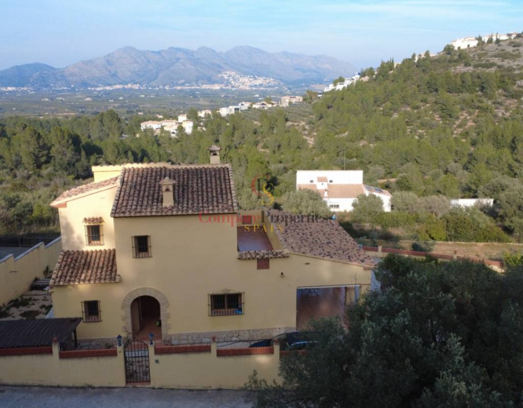 Villa with pool for sale in Orba (Costa Blanca). The villa has two floors with the following layout: The first floor is distributed into a living-dining room, independent kitchen, covered terrace, one bedroom and two bathrooms. On the upper floor, there is an open terrace, 3 bedrooms and one bathroom. It also features electric radiators, a fireplace, and a 8 x 4 m swimming pool. There is parking for 3 cars. The property is very close to all services such as supermarkets and restaurants. The nearest beaches are 15 minutes away. The largest shopping center in the area is in Ondara, about 10 minutes by car, as well as the highway to Valencia (1h) and Alicante (1h).