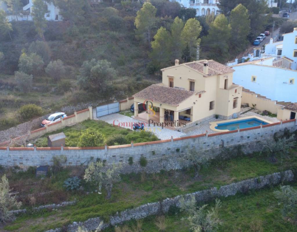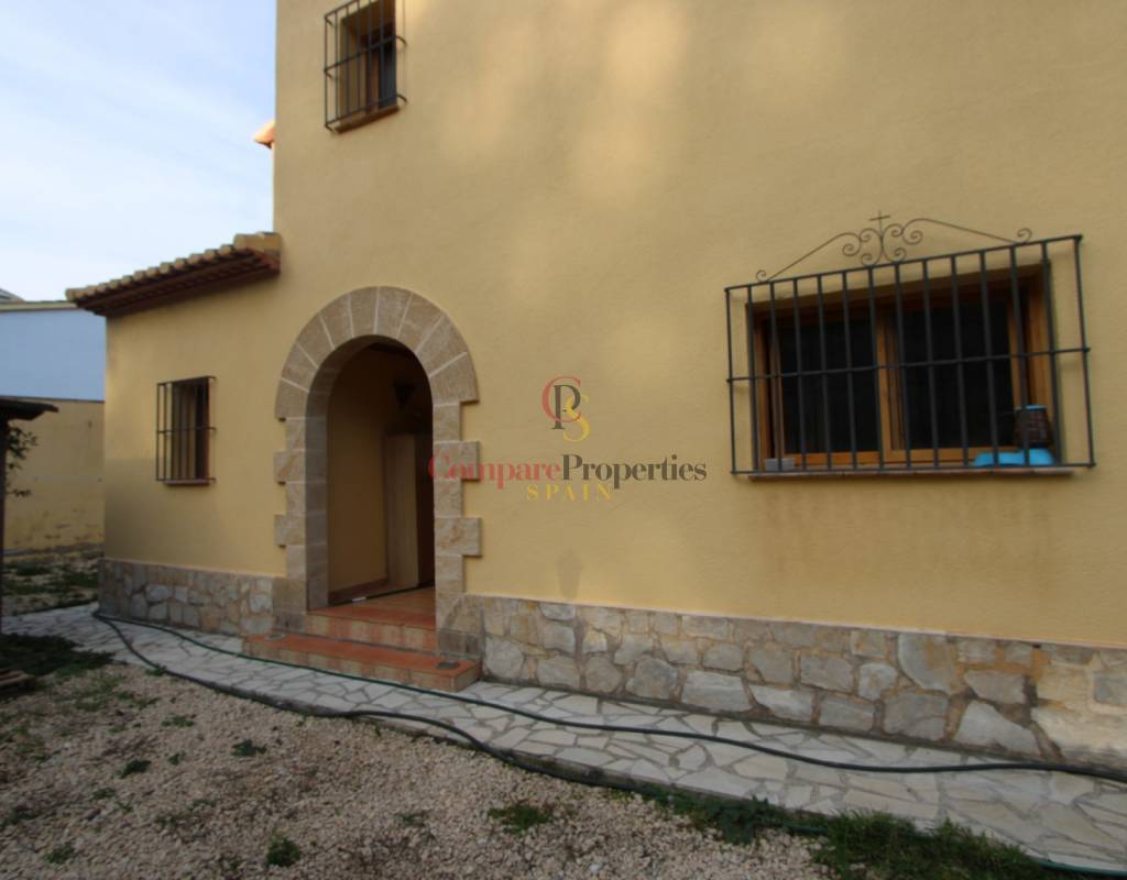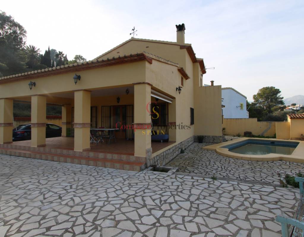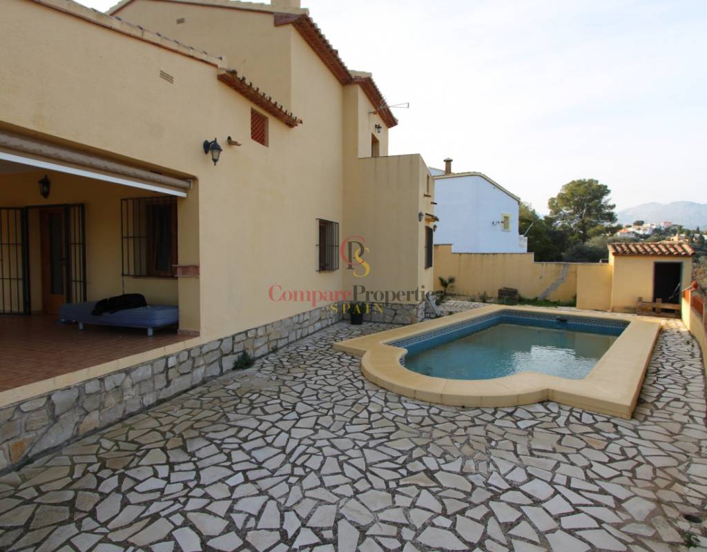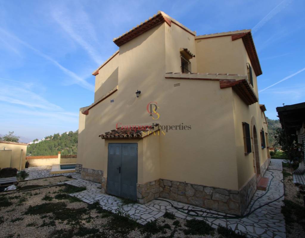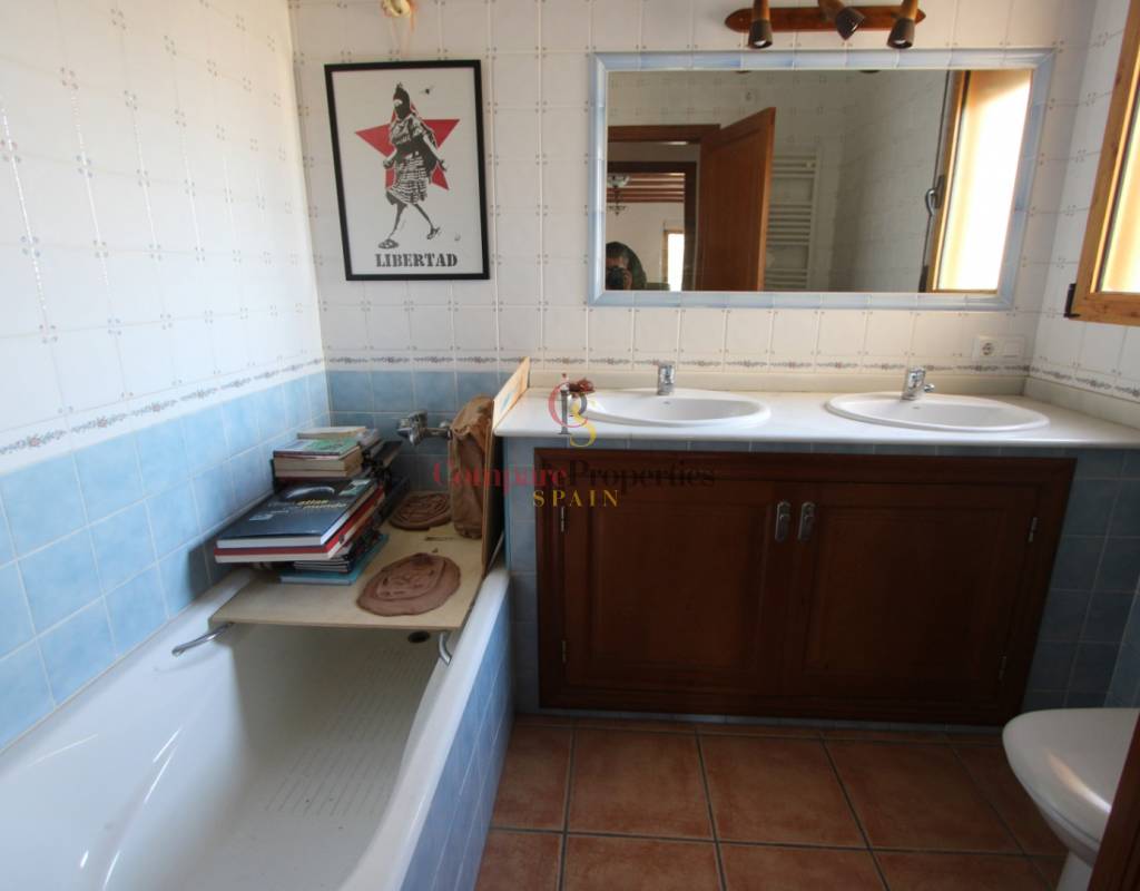 Villa with pool for sale in Orba (Costa Blanca). The villa has two floors with the following layout: The first floor is distributed into a living-dining room, independent kitchen, covered terrace, one bedroom and two bathrooms. On the upper floor, there is an open terrace, 3 bedrooms and one bathroom. It also features electric radiators, a fireplace, and a 8 x 4 m swimming pool. There is parking for 3 cars. The property is very close to all services such as supermarkets and restaurants. The nearest beaches are 15 minutes away. The largest shopping center in the area is in Ondara, about 10 minutes by car, as well as the highway to Valencia (1h) and Alicante (1h).