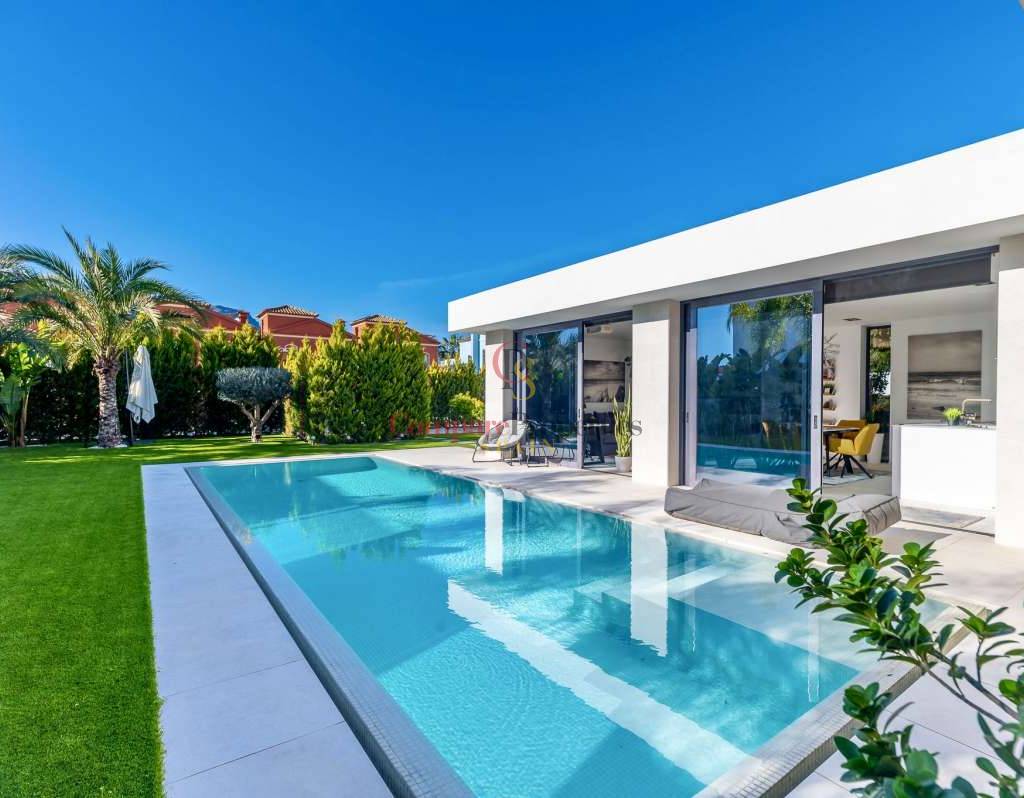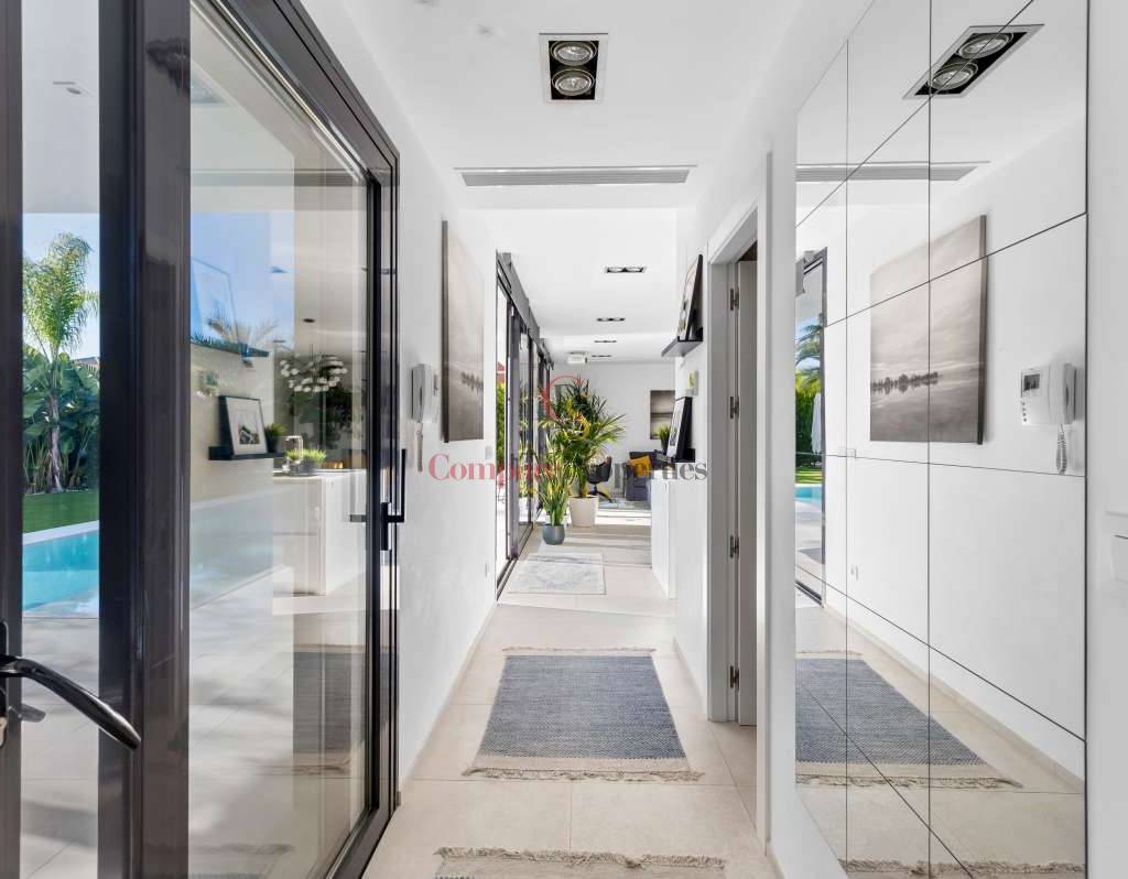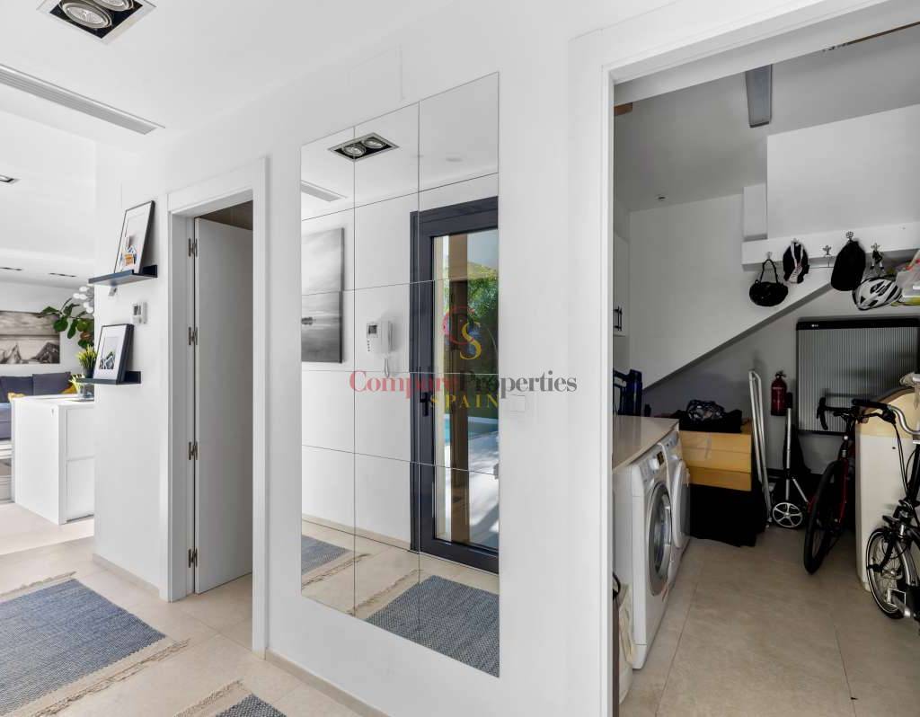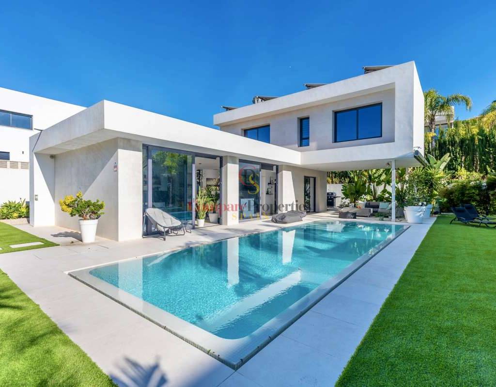 Welcome to The Sun, a modern, energy-efficient villa designed for those who value privacy, comfort, and a high-quality lifestyle. Built in 2018 and set on a generous 800 m² plot, this elegant home offers complete tranquility while remaining within walking distance of the beach, shops, restaurants, and all daily amenities.Prime LocationTucked away on a quiet one-way street, the property enjoys exceptional peace and privacy. There is no through traffic, only the soft sound of palm leaves and water. Despite this calm setting, everything you need is within a 15-minute walk – sandy beaches, seaside promenades, supermarkets, cafés, the charming old town, and scenic nature areas including the nearby salt lake with flamingos and running paths. A car becomes almost unnecessary for daily life.Privacy Without CompromiseUnlike properties with busy sea-front exposure, this villa offers real silence. No street noise, no tourist crowds – just authentic calm. The thoughtfully landscaped garden, with palm trees, strelitzias, lush greenery, and multi-level design, creates a natural screen and a pleasant microclimate. It truly feels like your own private oasis.Outdoor LivingThe highlight is the spectacular 10 × 4 m infinity pool, reaching depths of up to 1.8 m and equipped with an ozonation system for crystal-clear water without harsh chemicals. Surrounding it is a low-maintenance tropical garden with premium synthetic grass, shaded terraces, and a pergola-perfect breakfast area. A dedicated BBQ zone makes evenings by the pool unforgettable.Interior LayoutGround FloorWelcoming entrance hallGuest toiletStorage and separate laundry roomBright open-plan kitchen and living area (~50 m²)Large panoramic windows filling the home with sunlightDirect access to the terrace and gardenThe modern kitchen features a large stone island and top-of-the-line Miele appliances, including induction hob with built-in hood, oven, microwave, fridge, and freezer.Upper FloorTwo spacious bedrooms with fitted wardrobesMaster bedroom with a 160 × 200 cm bedSecond bedroom with two 90 × 200 cm bedsStylish family bathroomRemote Work ReadyA dedicated workspace is integrated into the living area with a large ergonomic desk, comfortable chair, printer, and two 27” UHD monitors. Thanks to ultra-fast 600 Mb/s fiber internet, video calls and large file transfers are seamless. The exceptional silence makes it ideal for focused remote work – even meetings on the terrace are disturbance-free.Smart & Sustainable Living14 photovoltaic solar panels + 10 kWh battery storageSolar collectors for hot waterSmart home system controlling security, climate, and lightingAlarm and cameras accessible via mobile appIntelligent garden irrigation systemEnergy-efficient, low-maintenance designEnjoy almost free electricity and drastically reduced utility bills.Parking & SecurityPrivate gated parking for 5–6 cars, including space for a camper vanEV charging socket (220V)Automatic entrance gateLocated in a quiet detached housing area with no apartment blocks or short-term rentalsReady to Move InThe villa is sold fully furnished and equipped – exactly as seen in the photos. Just bring your suitcase and start living. The property also includes garden storage, an extra freezer, washer, and dryer.Future PotentialIncluded in the price is an approved extension project allowing expansion to 5 bedrooms and 4 bathrooms, making this an outstanding long-term investment.This is more than a house – it’s a lifestyle.