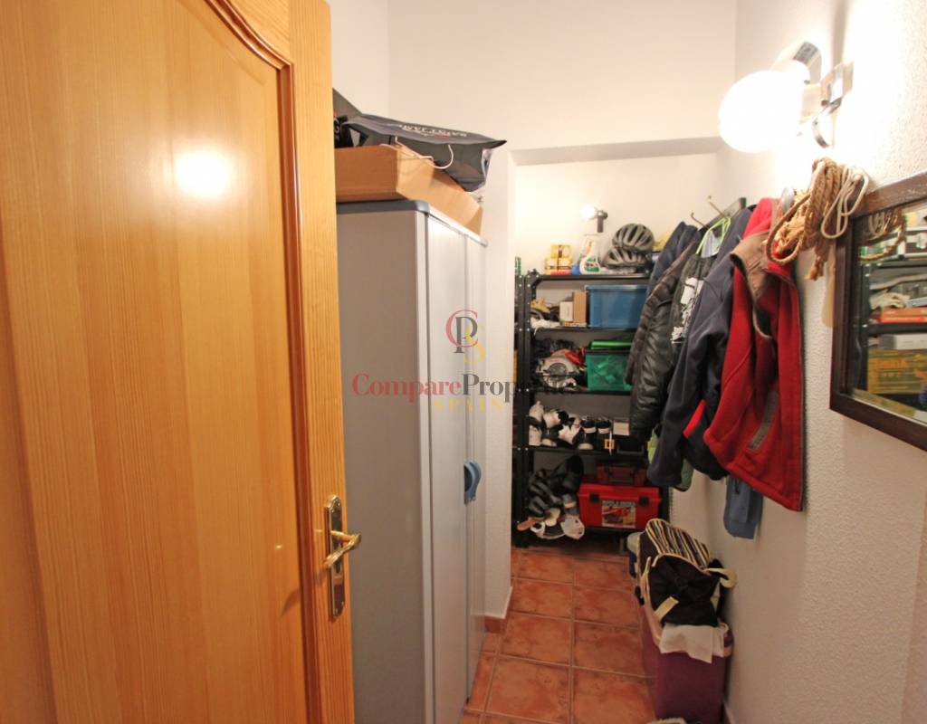 On the ground floor, we find a cozy living-dining room, an independent kitchen, storage room, laundry room, a toilet, and a pleasant patio that provides light and ventilation. The first floor features an open terrace perfect for enjoying the Mediterranean climate, two bedrooms with fitted wardrobes, and a full bathroom.