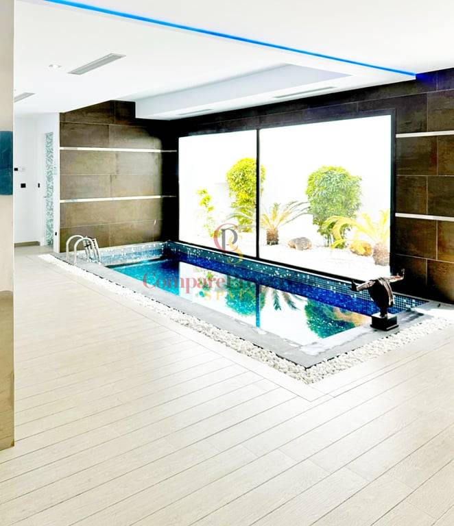 The villa has a heated indoor pool, gym, and additional bathrooms, ensuring well-being throughout the year. Additionally, the covered garage provides security and convenience.